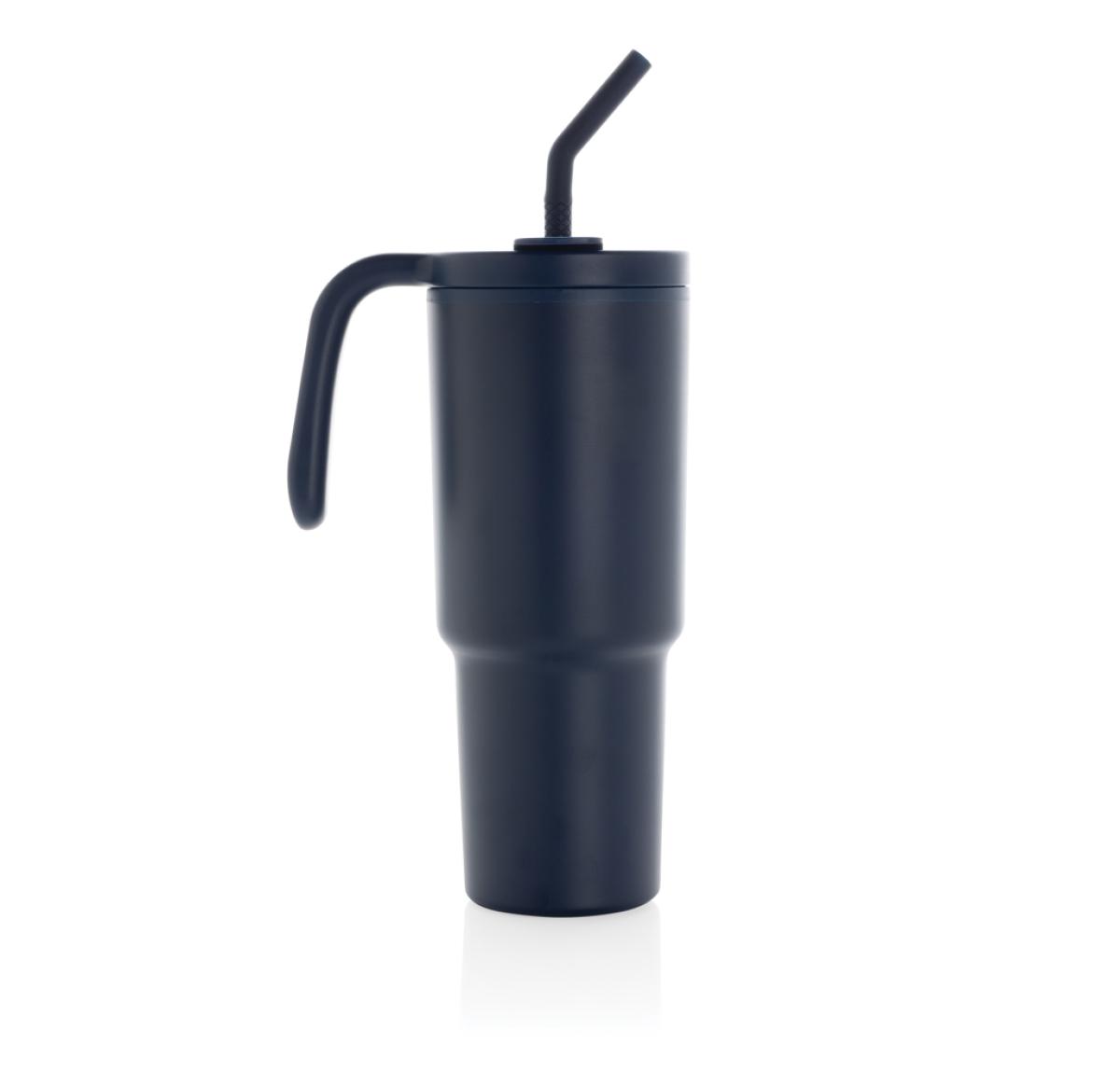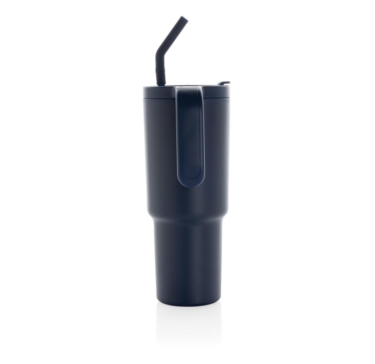 The most popular mug now suitable for perfect 360 round body printing. A 900ml tumbler designed for eco-friendly hydration, made with recycled materials. Whether you're working, exercising, or travelling, this tumbler is your perfect companion. The innovative lid features a rotating cap with three positions: a spill-resistant straw opening, a sipping spout, and a fully sealed lid. The ergonomic handle with comfort-grip inserts ensures easy carrying, and the slim base fits most car cup holders. Hand wash only. BPA-free. Capacity: 900ml. Includes FSC®-certified kraft gift packaging. Total recycled content: 36% based on total item weight.