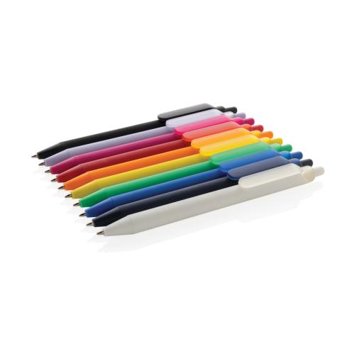 The Tide GRS Certified RABS Pen Smooth Touch stands out with its unique design, reminiscent of a pen wearing a tie when you look closely at the clip and barrel. Crafted from 91% recycled ABS, this pen combines durability with style. It features a smooth rubberised silicone grip around the barrel for added comfort, ensuring a premium writing experience. The frosted coating on the plunger, clip, and tip adds a sleek touch, while the blue ink flows smoothly for up to 1200 metres. The pen operates with a click mechanism for easy use.