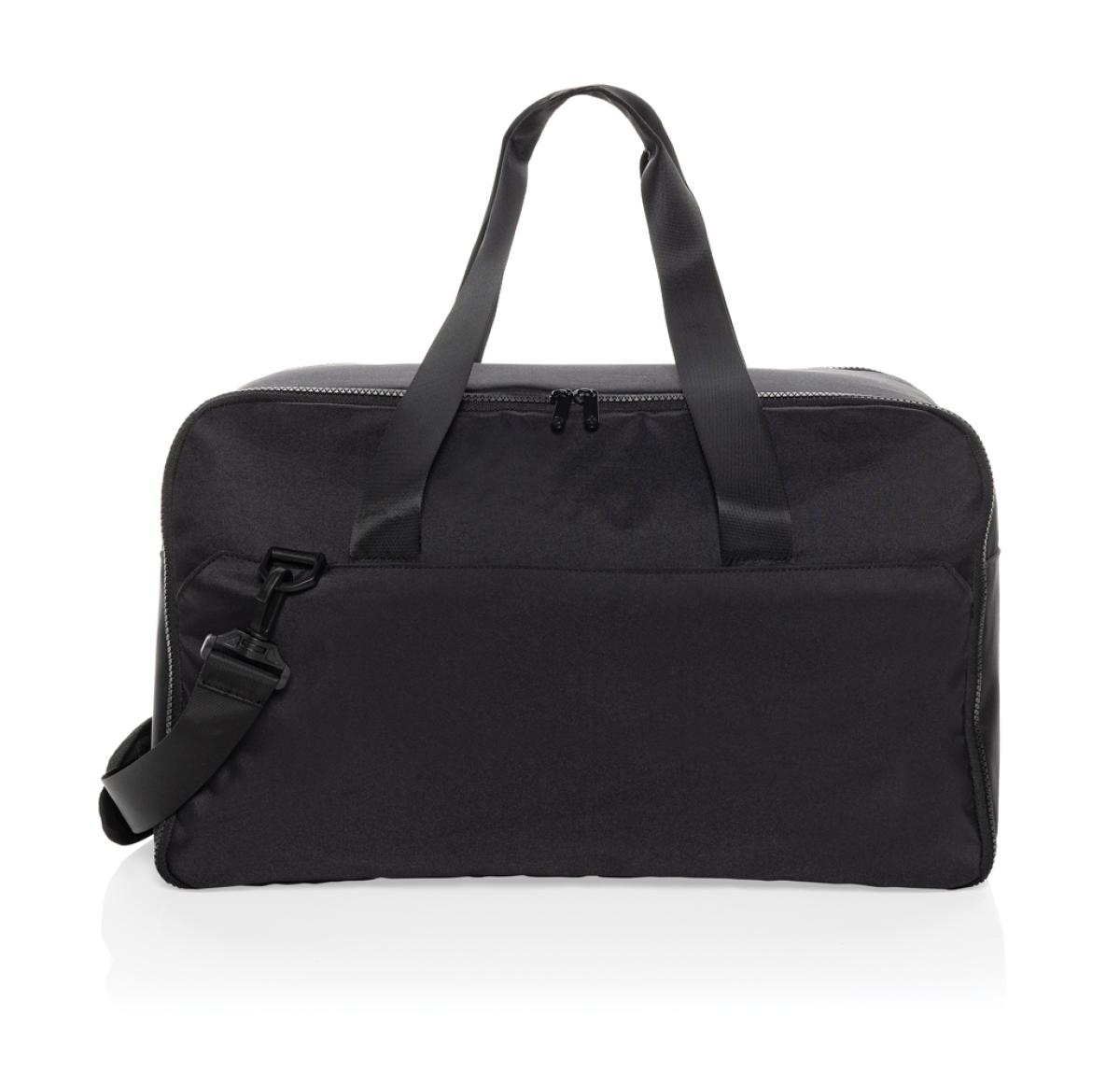 Your standard business Swiss Peak weekend bag with 15"6 inch laptop compartment for all your short business trips. Made with Aware™ RPET 300D/150D. Main compartment has additional pockets and an zipper pocket on the inside. Rigid zippers