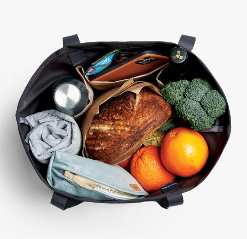 Sized for grocery runs, and with handy bottle sleeves inside, this versatile tote folds easily away and pops out at the shops. Stands upright when open. Folds away flat. 2 side sleeves keep bottles upright. Centre slip pocket for small essentials. Long shoulder straps. Lightweight and durable.