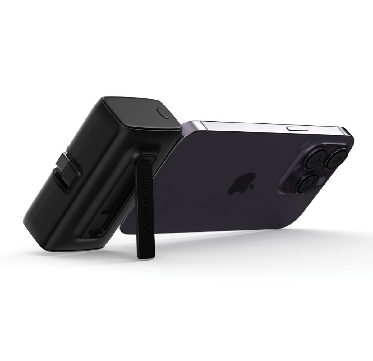 Carry 20W portable power in your pocket and be ready to fast charge on the go wherever you are! Urban Vitamin Los Angeles is a lightweight but powerful 5000mAh power bank. With dual fast charging options to re-charge via the integrated iOS connector (for iPhone 14 and older) and state-of-the-art Type-C output, you can charge your phone without the need to bring any cables! You can even charge two items at the same time. All outputs offer ultra-fast 20W charging to re-charge up to 50% in less than 30 minutes. Beside two integrated connector the item also has a USB C input port to fast re-charge the powerbank. It also features an integrated stand to charge your phone while watching movies or listening to music. Made with RCS recycled ABS and recycled PC, the total recycled content is 24% based on total item weight. Urban Vitamin items are made without PVC and packed in plastic-reduced packaging.