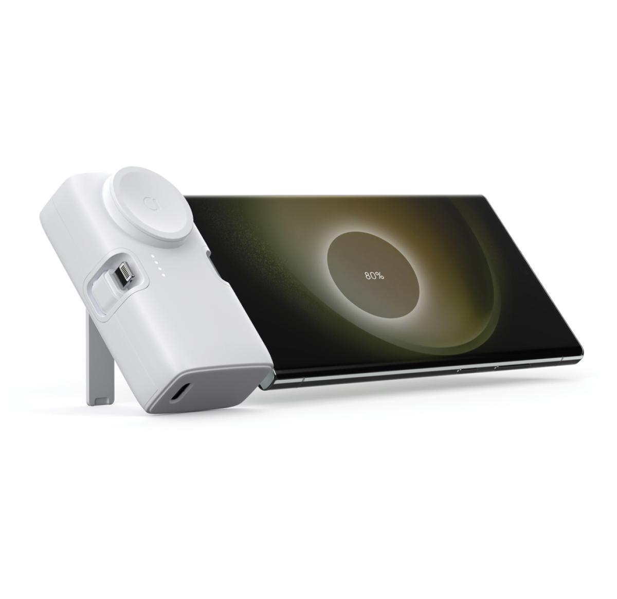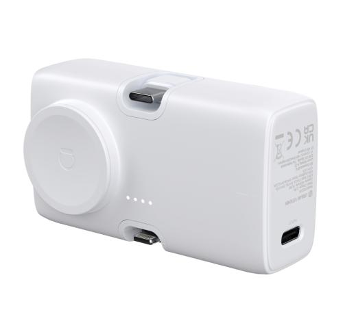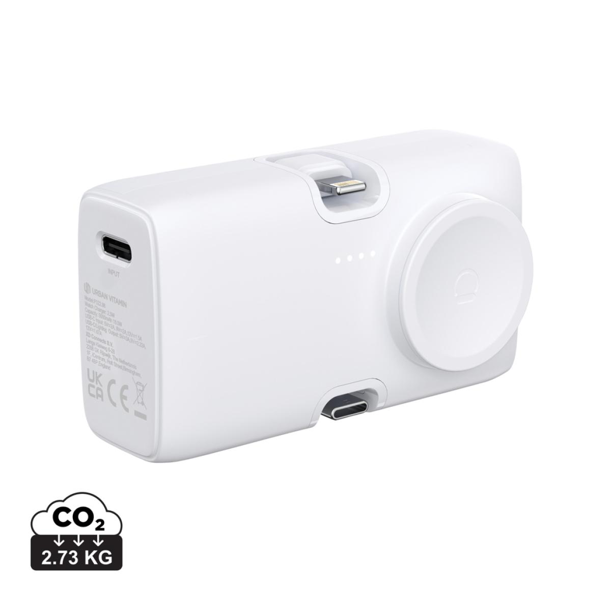 Carry 20W portable power in your pocket and be ready to fast charge on the go wherever you are! Urban Vitamin San Diego is a lightweight but powerful 5000mAh power bank. With dual fast charging options to re-charge via the integrated iOS connector (for iPhone 14 and older) and state-of-the-art Type-C output, you can charge your phone without the need to bring any cables! You can even charge two items at the same time. All outputs offer ultra-fast 20W charging to re-charge up to 50% in less than 30 minutes. Beside two integrated connector the item also has a USB C input port to fast re-charge the powerbank. It comes with an integrated watch charger to charge all recent Apple watch models. It also features an integrated stand to charge your phone while watching movies or listening to music. Made with RCS recycled ABS and recycled PC, the total recycled content is 24% based on total item weight. PVC free and plastic packed in plastic reduced box.