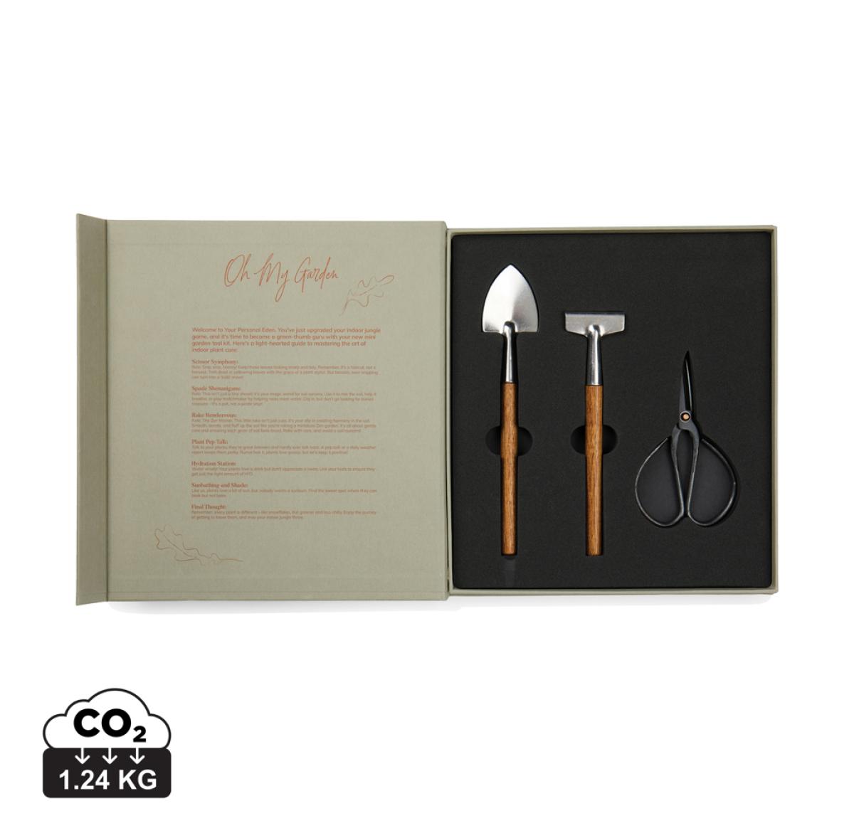 Discover the enchanting world of indoor gardening with the Story of garden set, beautifully packed in a gift box that resembles a classic book. This set includes a rake, and a spade crafted from stainless steel and acacia wood together with a pair of classic herb scissors in sturdy iron. These tools will help you tend to your indoor plants with ease. The unique packaging not only protects your tools but also tells a captivating story, making it a perfect gift for plant lovers. The giftbox is crafted from FSC® certified paper.