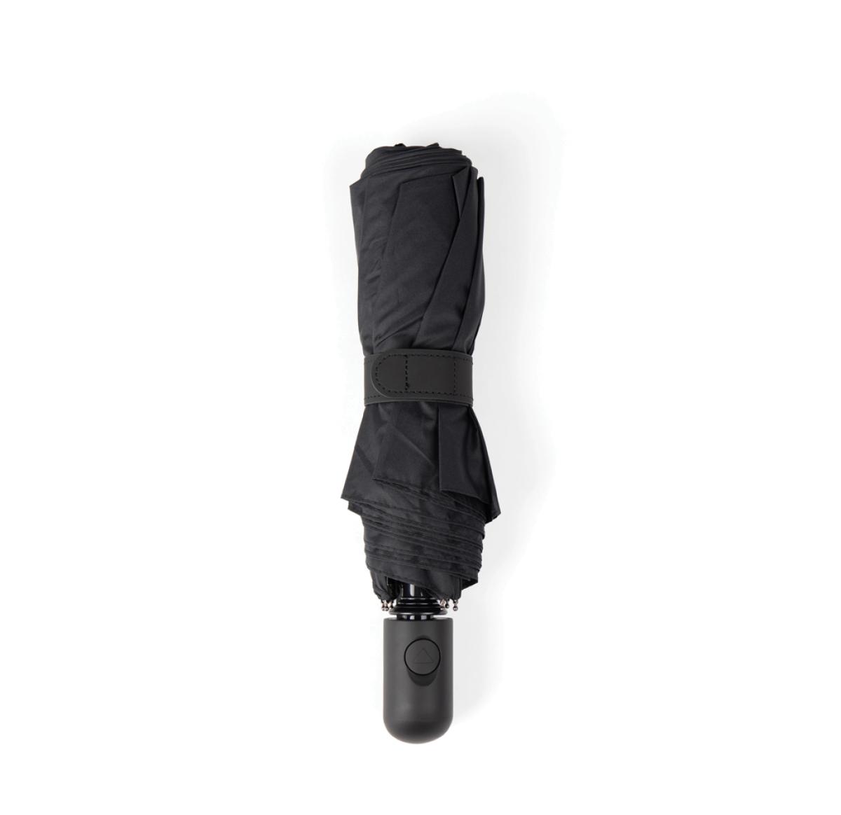 This stylish and modern 21-inch umbrella will keep you dry even on the rainiest of days. The compact size makes it the perfect confidant for life on the go. Crafted from premium 190T pongee RPET fabric, it provides excellent rain protection whilst it boasts a sleek design. Designed with a metal shaft and full fiberglass frame, this umbrella ensures strength and durability for challenging weather. The minimalist ABS plastic handle, with a comfortable rubber finish, adds contemporary flair and a secure grip. Featuring an auto-open/manual-close system for ease of use. The storage pouch in the classic Baltimore PU fabric provides additional protection when not in use. Stormproof. With AWARE™ tracer technology, this umbrella confirms the genuine use of recycled materials, underscoring our commitment to responsible sourcing.