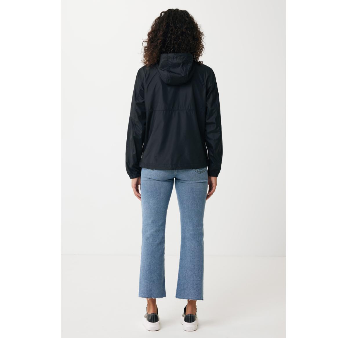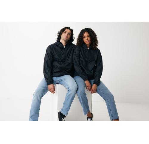 Unisex medium fit lightweight jacket made from 100% post-consumer recycled polyester in 70 G/M². The jacket has an adjustable hood with elastic string, a reversed zipper at the front and seam welt pockets. All zippers have extra zip pullers in matching colour for a refined look. The cuffs are fully elasticated. The back of the jacket is slightly longer and curved and the bottom hem has an elastic string and stoppers for better protection. Fluorine/PFAS free water repellent impregnation. The use of genuine recycled fabric materials and environmental impact claims are guaranteed, by using the AWARE™ disruptive physical tracer and blockchain technology. By scanning the QR code, you will gain access to a dedicated digital passport. 2% of proceeds of each sold product will be donated to Water.org. This product is OEKO-TEX® STANDARD 100 certified.