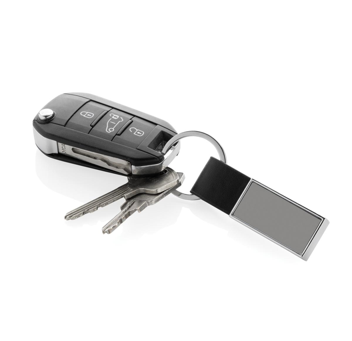 Luxury PU Keychain RCS Recycled Zinc Alloy Black
