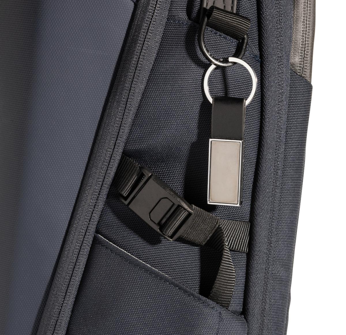 Luxury keychain made with RCS recycled zinc alloy and PU. Total recycled content: 67% based on total item weight. RCS certification ensures a completely certified supply chain of the recycled materials. Packed in paper bag.