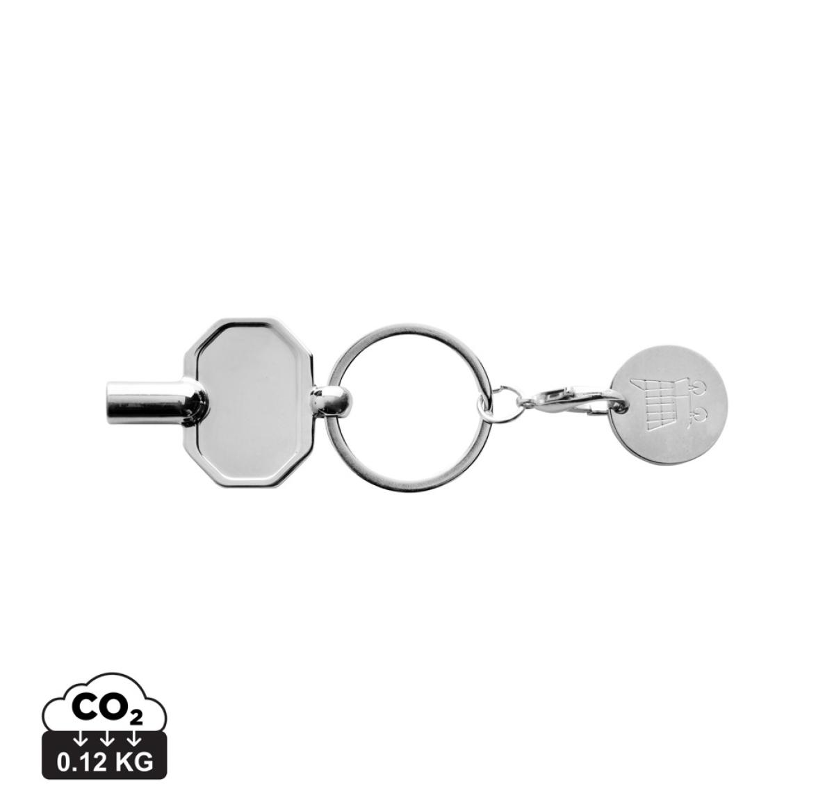 Radiator key keychain with caddy coin made from RCS recycled zinc alloy. Total recycled content: 75% based on total item weight. RCS certification ensures a completely certified supply chain of the recycled materials. Packed in paper bag.