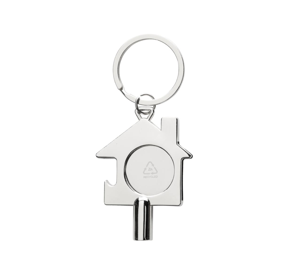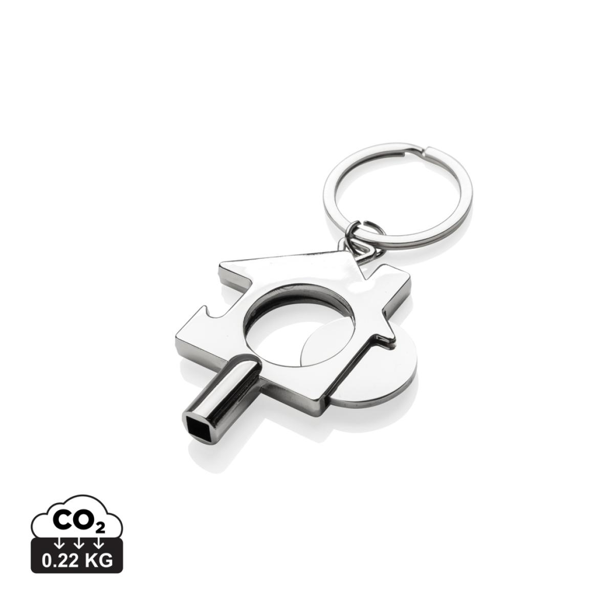 Multi-function keychain with radiator key,caddy coin and strong bottle opener. Made from RCS recycled zinc alloy. Total recycled content: 80% based on total item weight. RCS certification ensures a completely certified supply chain of the recycled materials. Packed in paper bag.
