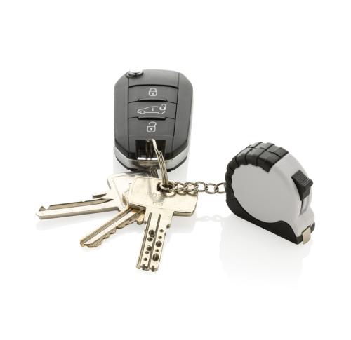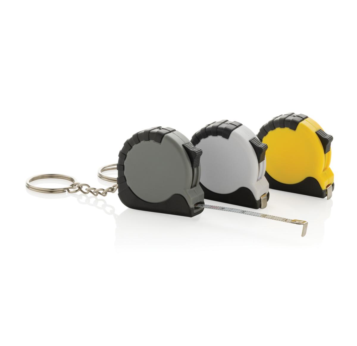 1 metre keychain tape. Made from RCS recycled ABS and stainless steel blade. Total recycled content: 27% based on total item weight. RCS certification ensures a completely certified supply chain of the recycled materials. Packed in FSC mix packaging.