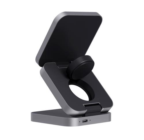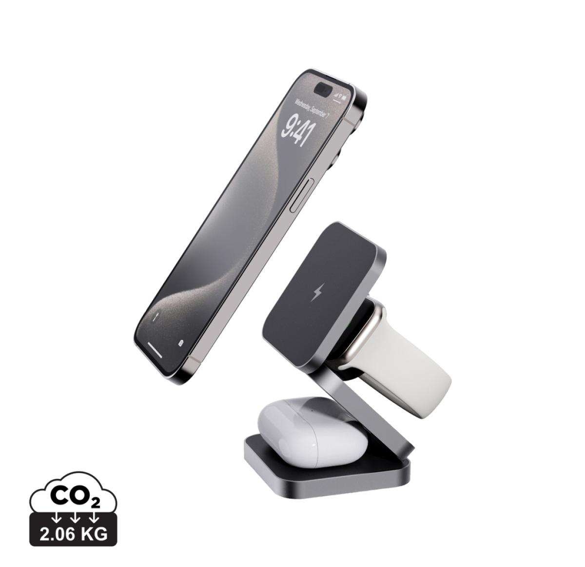 Terra RCS Recycled Aluminum Foldable 3 In 1 15W Charger Grey