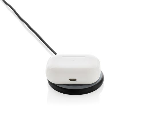 Unique design 15W magnetic wireless charger that gives you the option to charge either your mobile device, earbuds or iWatch. Simply click them on and start charging. Made with recycled ABS and recycled TPE. Total recycled content: 35% based on total item weight. RCS certification ensures a completely certified supply chain of the recycled materials. Including 120 cm USB A to USB C charging cable made from RCS certified recycled TPE. Packed in FSC® packaging. PVC Free. Output 9V.2.2A Output watch: 9V/0.4A, Output earbuds: 9V/0.5A. Input 9V/3A.