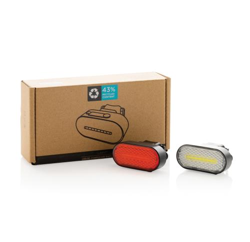 Lumino RCS Recycled Plastic USB Re-chargeable Bike Light Set Black