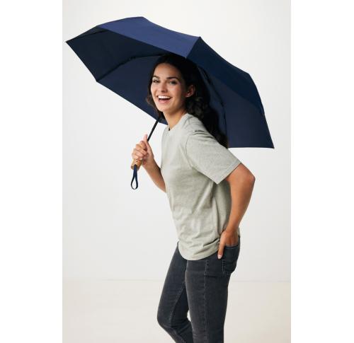 Kaycey 21" AWARE™ RPET Acacia Wood Mini Auto Open Umbrella Navy