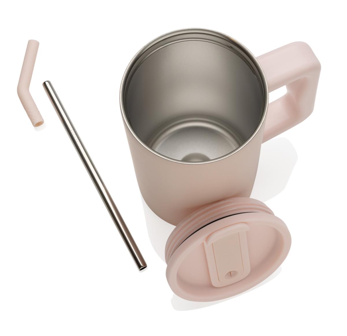 Indulge in the robust embrace of our generously sized 800ml mug – substantial and perfect for on your office desk. Its sturdy handle and broad base make it an ideal companion for your daily water intake in the office. Crafted from durable recycled stainless steel, this mug is designed to meet your hydration needs.This hefty, double-walled, vacuum-insulated mug comes equipped with a secure lid, straw, and a silicone straw tip. Versatile enough for both piping hot and ice-cold beverages, the screw-on lid offers a dual function – a convenient drinking spout or the option to use a straw. For optimal care, we recommend handwashing this substantial mug