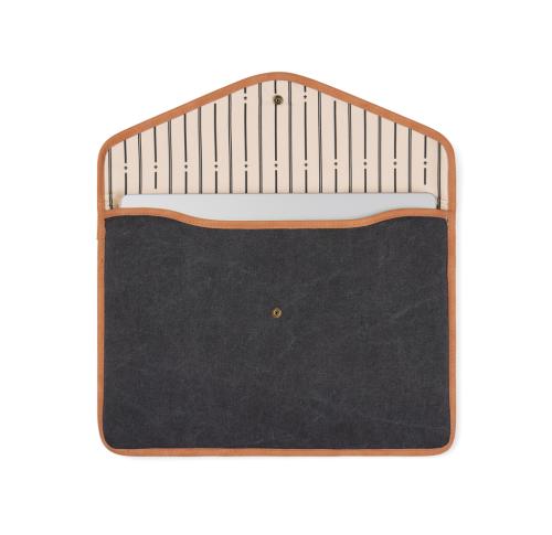 Keep your laptop safe with a classic and stylish sleeve from our Bosler series. Closed with a press button and padded for safe storage. Made of recycled canvas with details in PU. Please note: Display dimensions may vary from laptop dimensions. Certified by GRS (Global Recycled Standard), GRS certification guarantees that the entire supply chain of the recycled materials is certified. The total recycled content is based on the overall product weight.This product contains 37% GRS certified recycled cotton and 25% GRS recycled polyester.