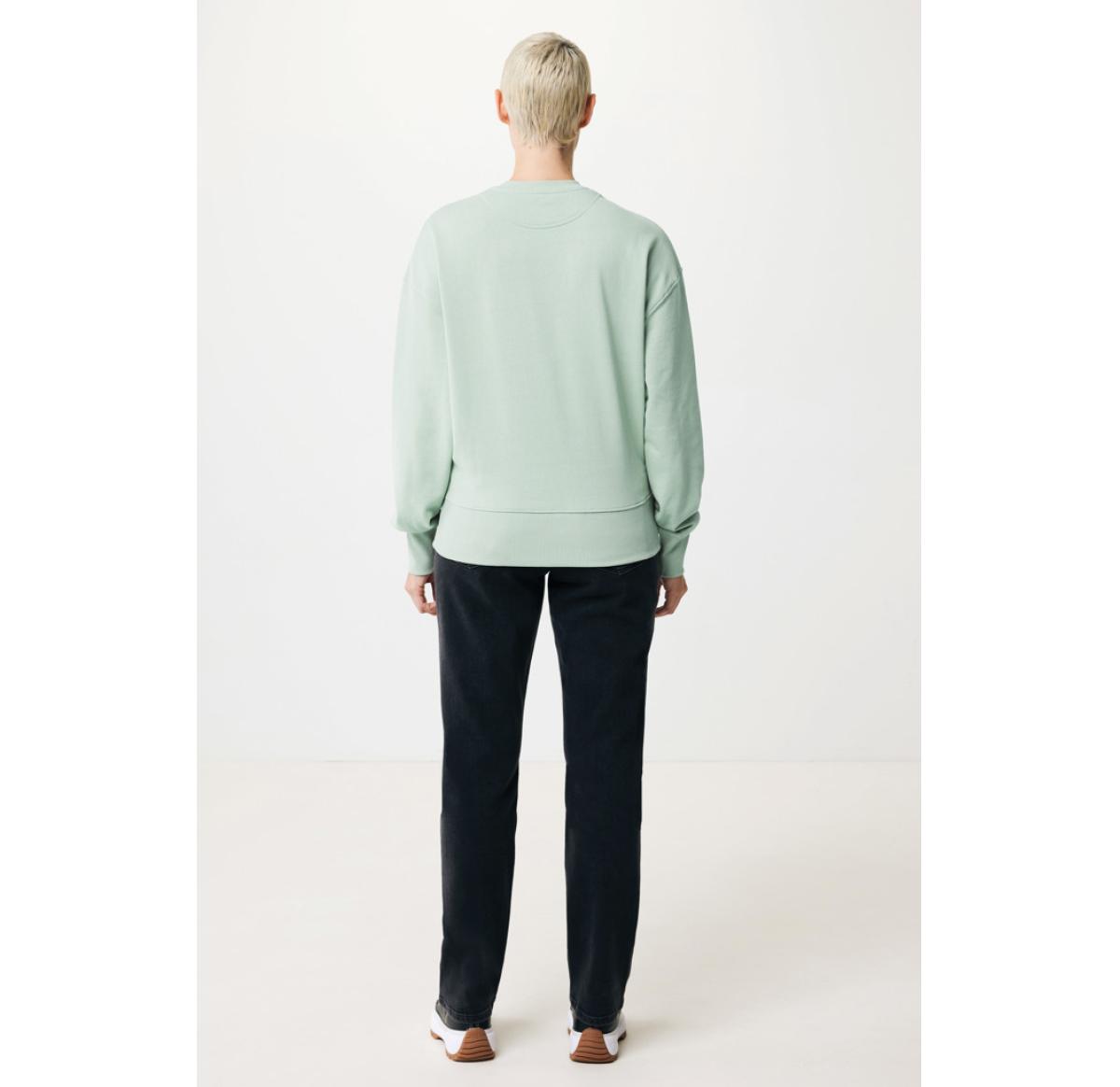 Unisex relaxed fit crew neck made from 100% cotton, of which 50% recycled and 50% organic, in 340 G/M². The sweater has dropped shoulders, a round neckline, wider long sleeves and 2x2 rib. The inside is soft-brushed fleece for extra comfort. The use of genuine recycled & organic fabric materials and environmental impact claims are guaranteed, by using the AWARE™ disruptive physical tracer and blockchain technology. By scanning the QR code, you will gain access to a dedicated digital passport of the product. 2% of proceeds of each product sold will be donated to Water.org. This product is OEKO-TEX® STANDARD 100 2303045 Centexbel. certified. Due to the nature of recycled yarns, impurities and color variations may appear.