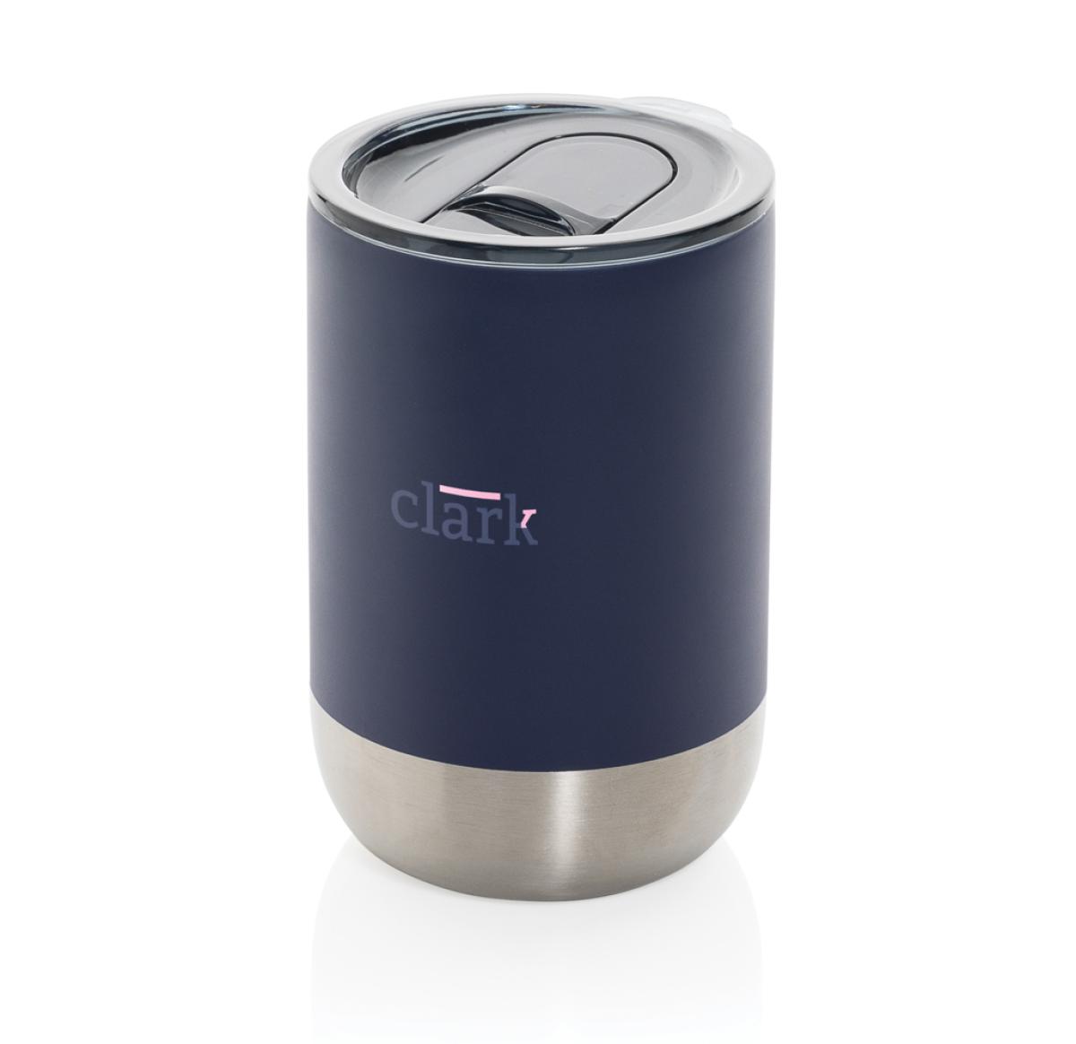 This beautiful tumbler features a recycled stainless steel construction with vacuum insulation to keep drinks warm for up to 3 hours or cold for up to 6 hours. Its trendy execution with stainless steel bottom accent makes it a true eye catcher. The lid with slide open function ensures a smooth drinking experience. Made with RCS (Recycled Claim Standard) certified recycled materials. RCS certification ensures a completely certified supply chain of the recycled materials. Total recycled content: 76% based on total item weight. BPA free. Capacity 360ml. Including FSC®-certified kraft packaging.