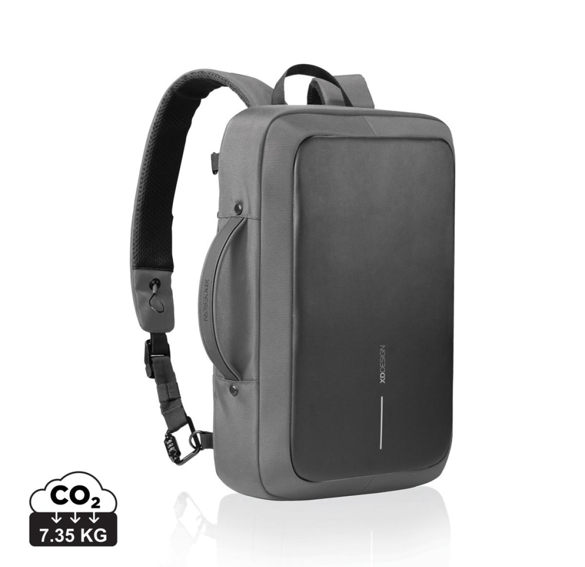 Keep your belongings safe and make your commute more stylish with the new Bobby Bizz 2.0. Ready for any business occasion, you can convert this backpack into a briefcase in a matter of seconds, just by putting the shoulder straps in the back pocket. To keep you and your belongings safe, the iconic Bobby anti-theft design has no front access, hidden zippers, and a hidden RFID-protected pocket. It is enhanced with cut-resistant material and a built-in metal frame. The improved EVA back panel provides additional comfort. You can also securely lock your Bobby Bizz 2.0 to any fixed object with the integrated zinc alloy lock in the right strap. In the backpack interior, there are padded compartments for a 16” laptop, a tablet up to 12.9”, and all your professional gear. Now made from R-pet fabric with the AWARE™ tracer. With AWARE™, the use of genuine recycled fabric is guaranteed. 33% recycled content.