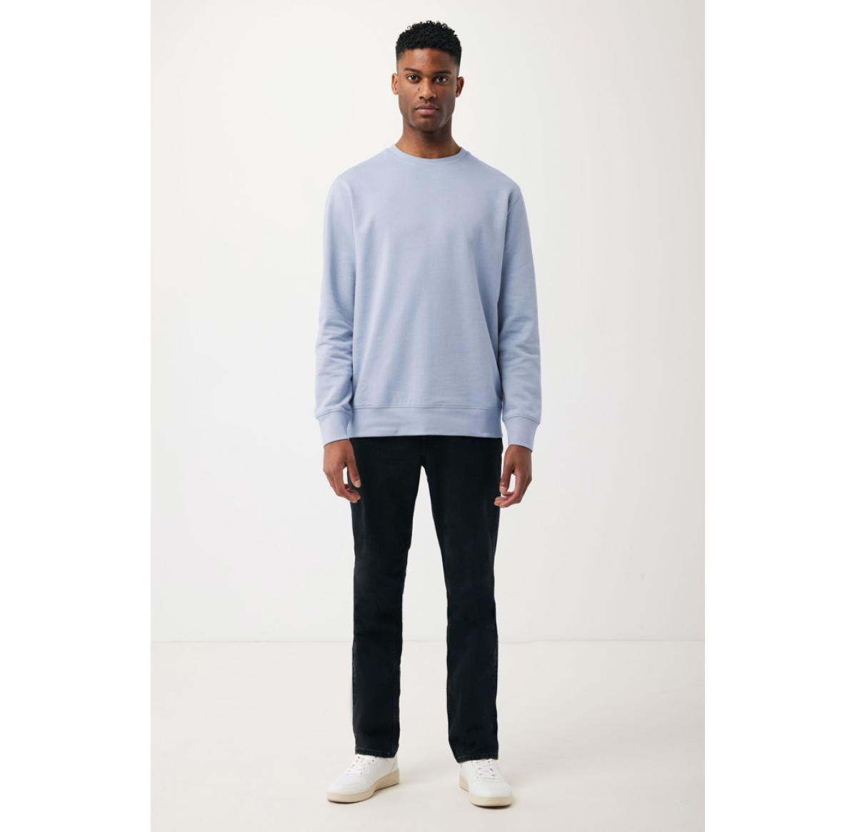 Unisex modern fit crew neck made from 100% cotton, of which 70% is organic and 30% recycled, 280 G/M². The crewneck has long sleeves and 1x1 rib at neckline, cuffs and bottom hem. The inside is soft-brushed fleece for extra comfort. The use of genuine recycled & organic fabric materials and environmental impact claims are guaranteed, by using the AWARE™ disruptive physical tracer and blockchain technology. By scanning the QR code, you will gain access to a dedicated digital passport of the product. 2% of proceeds of each sold product will be donated to Water.org. This product is OEKO-TEX® STANDARD 100 2303045 Centexbel certified. Due to the nature of recycled yarns, impurities and colour variations may appear.