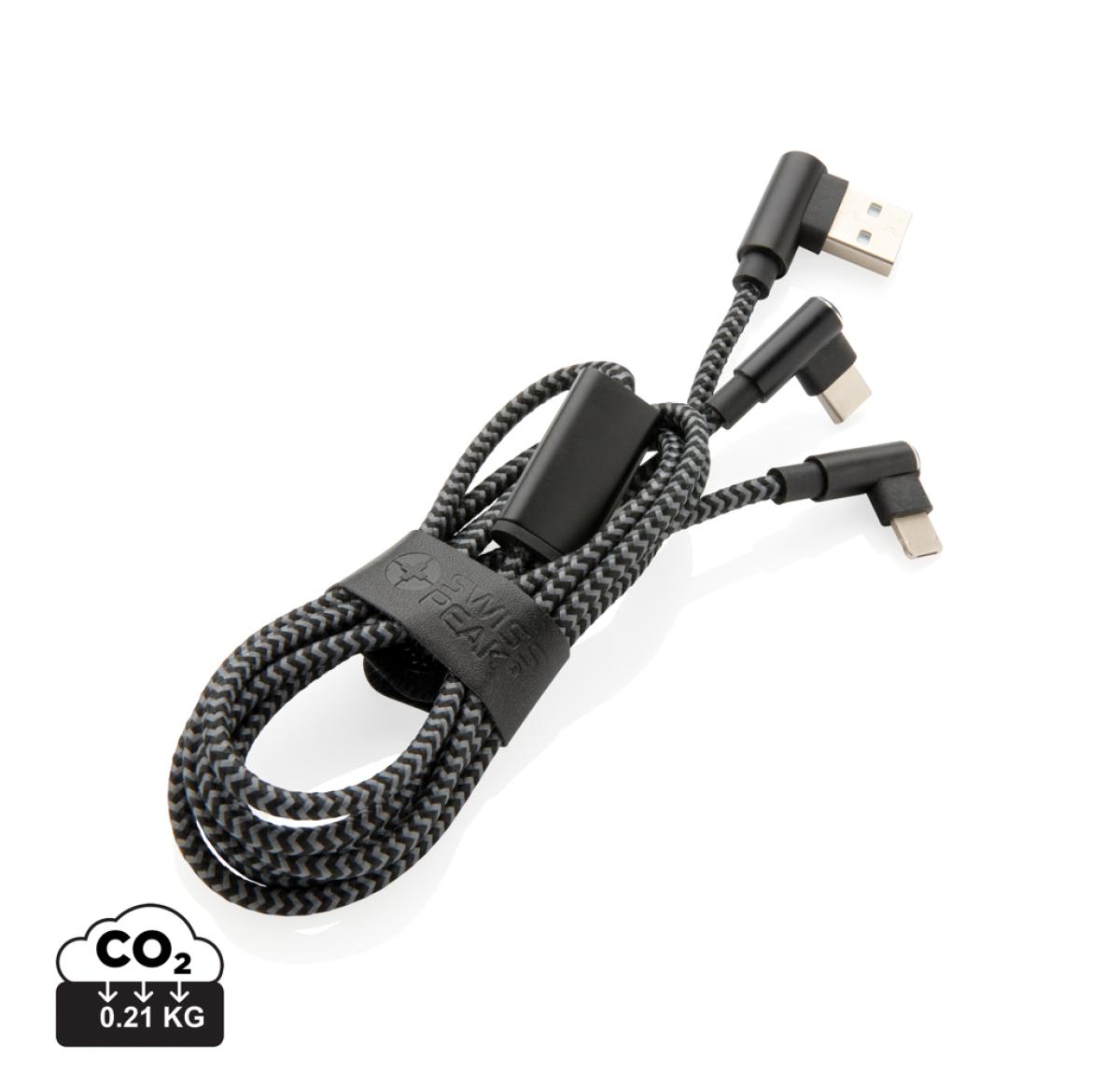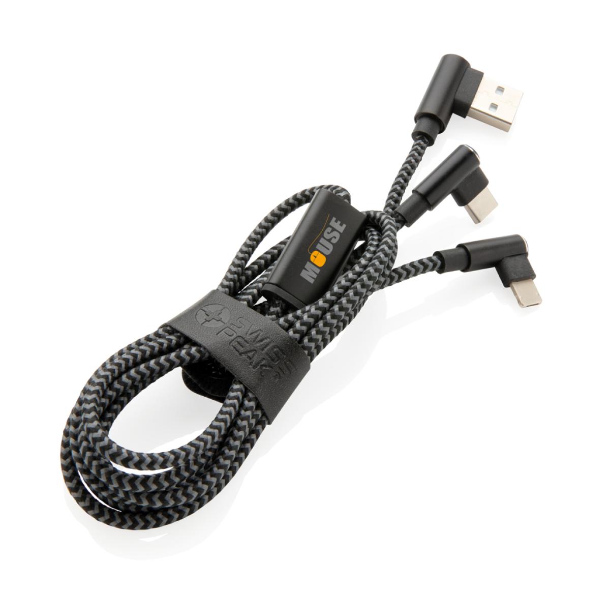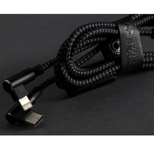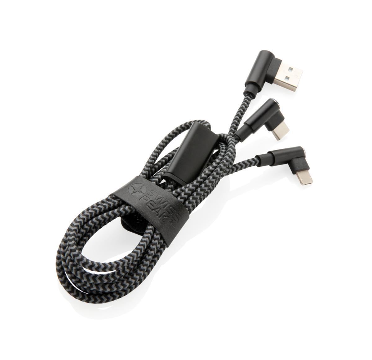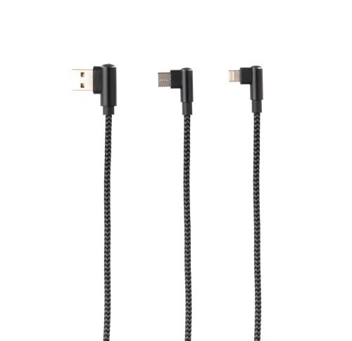 Luxury braided 3 in 1 cable with type C and double-sided connector for iOS and Android devices that require micro USB. The connectors are placed sideways to fit perfectly into your mobile device. Braided nylon material cable with connectors made out of du