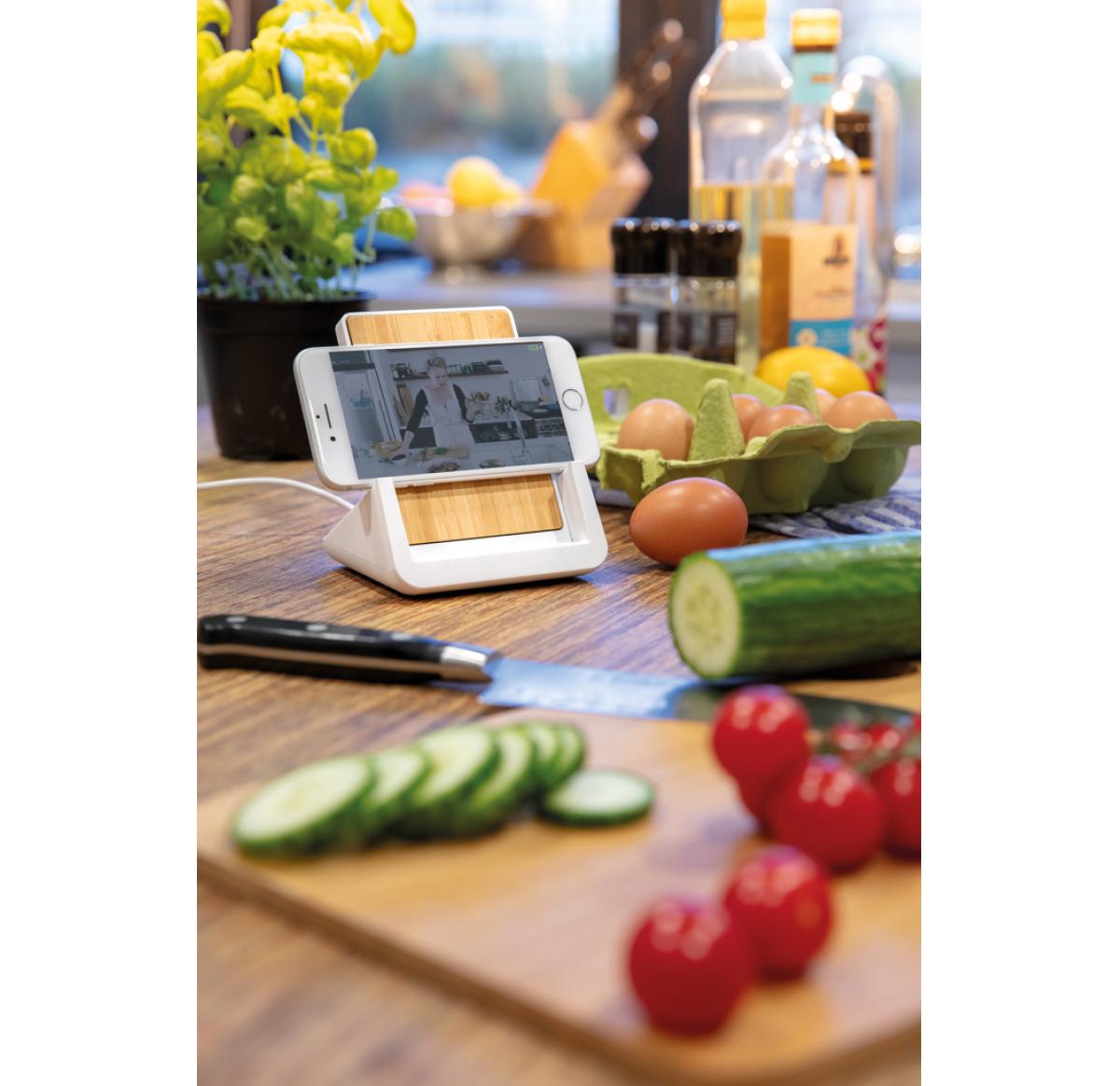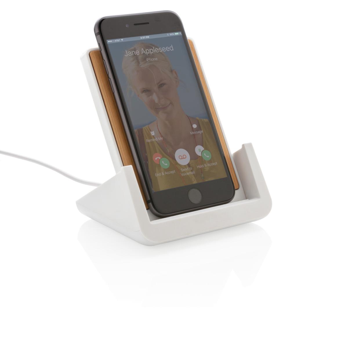 Upgrade your desk with this super convenient wireless charger. Made out of ABS and 100% natural bamboo this wireless charger integrates perfectly on your desk or your living room. The wireless charger is a 5W charger and comes with a 150cm micro USB cable