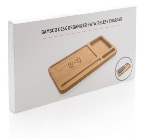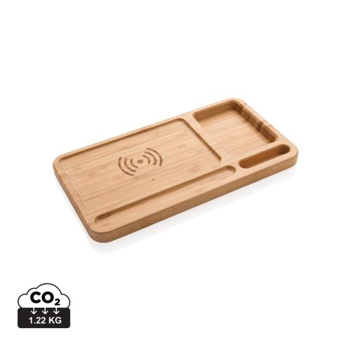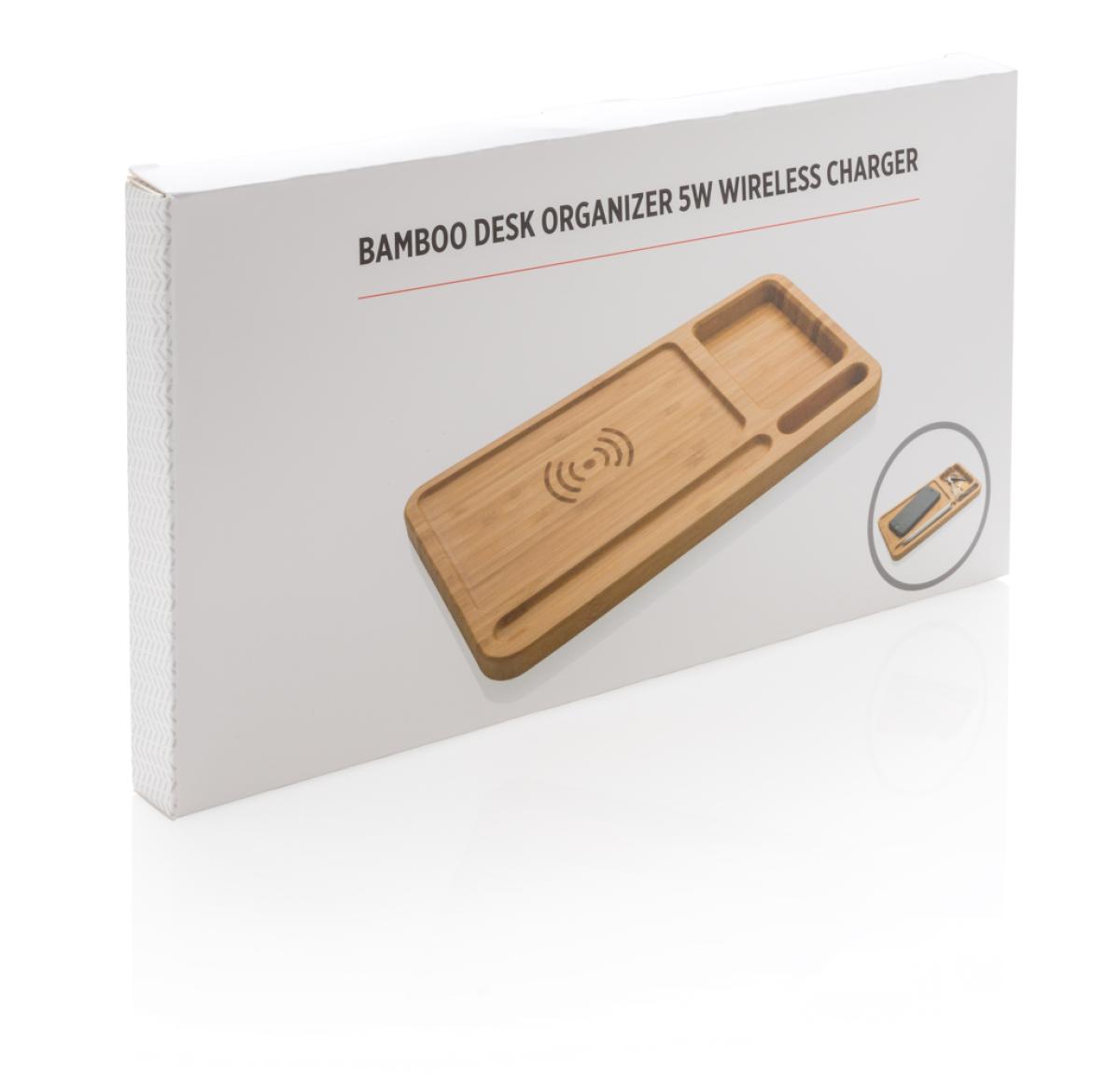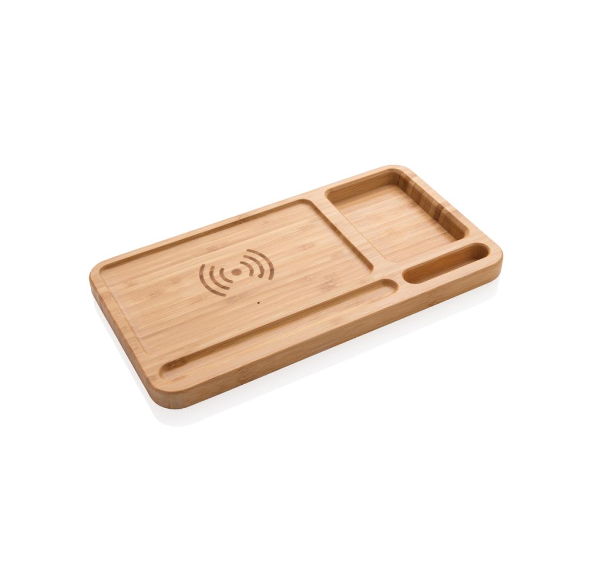 Branded Bamboo Desk Organiser 5W Wireless Charger