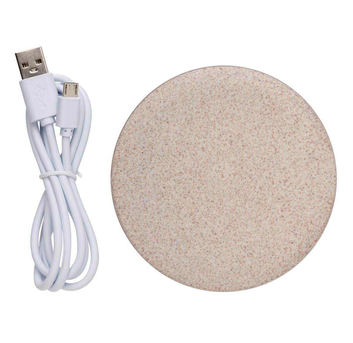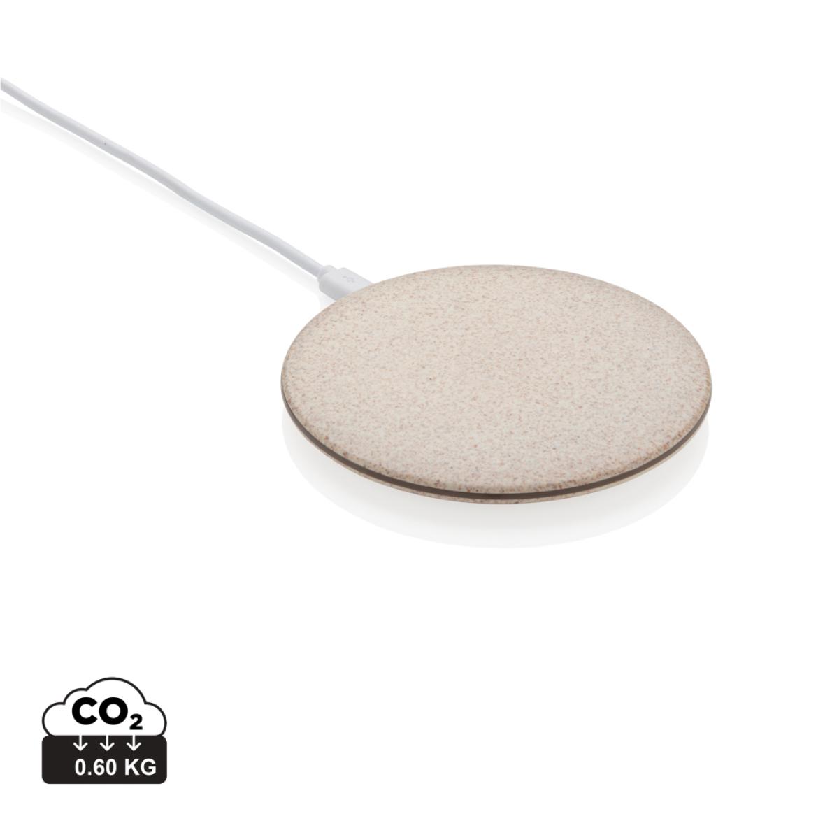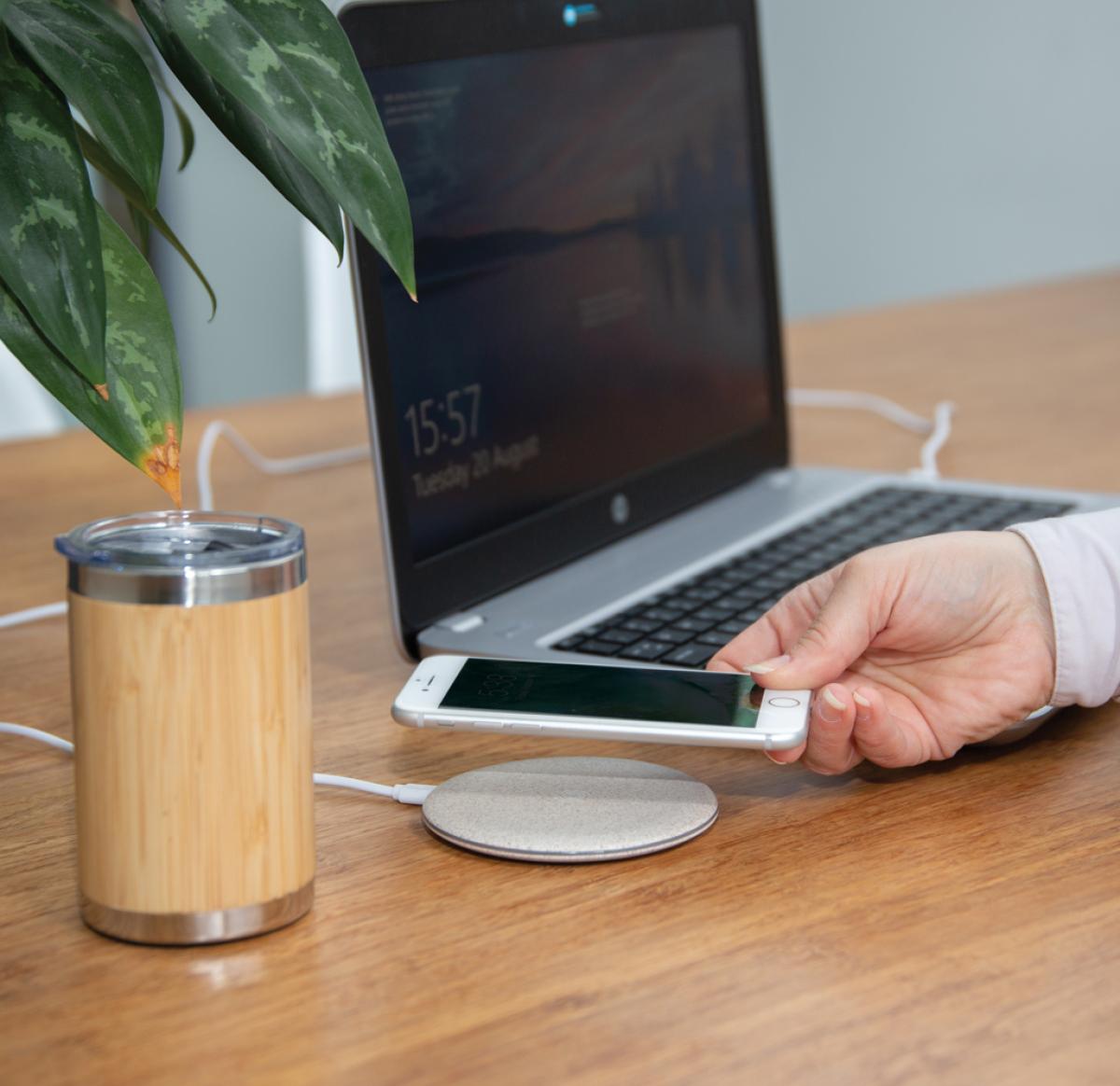 Ultra-flat 5W wireless charger to charge all wireless devices. Made out of a natural wheat fiber (35%) mixed with ABS. The LED indicator will light up when the device is charging. Compatible with all QI enabled devices like Android latest generation, iPho