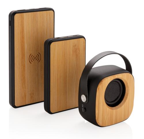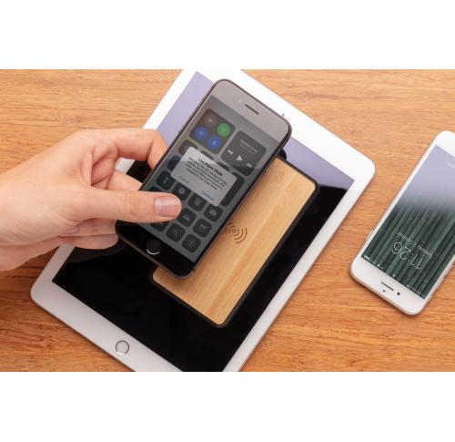 8.000 mAh powerbank made out of natural and sustainable bamboo and ABS with soft touch finish. Supports 5W wireless charging and charging via USB port by cable. Input both via micro USB as type C. When fully charged it will provide you with enough energy