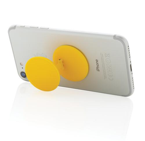 Multi-function phone stand, holder and cord winder. Comes with adhesive backing to easily attach to your mobile device. Perfect for taking selfies, watching videos or facetiming your friends. Made out of PP material. Registered design. Including additiona
