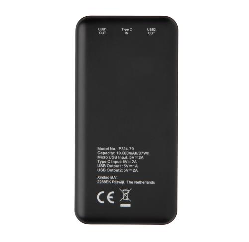 Powerful and portable 10.000 mAh powerbank made out of lightweight ABS that fits into your pocket so perfectly that you can take it anywhere you go. When fully charged it will provide you with enough energy to re-charge your mobile phone up to five times.