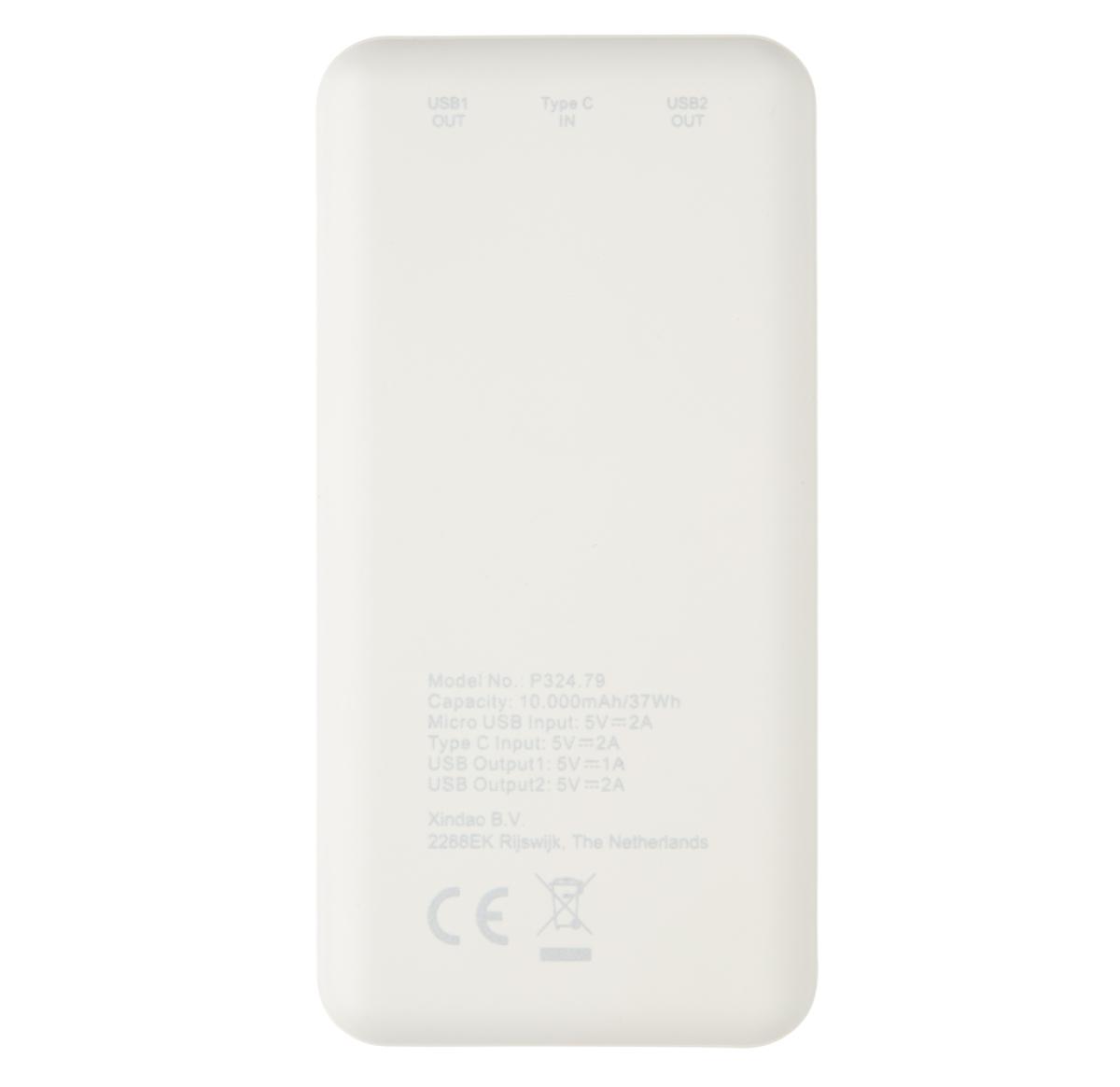 Powerful and portable 10.000 mAh powerbank made out of lightweight ABS that fits into your pocket so perfectly that you can take it anywhere you go. When fully charged it will provide you with enough energy to re-charge your mobile phone up to five times.