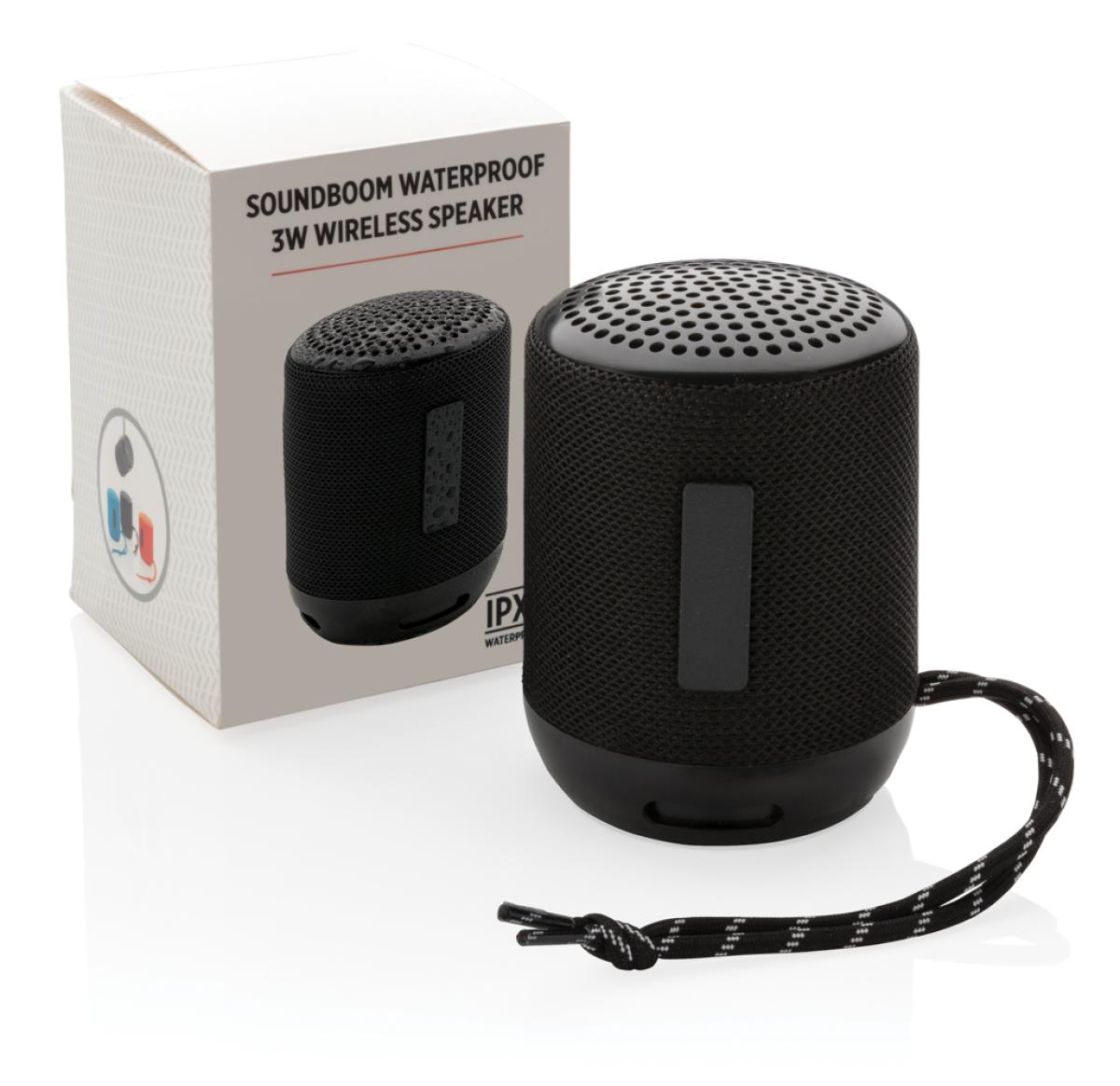Compact but powerful 3W wireless speaker that is perfect for outdoor activities like a picnic, BBQ, beach or even a pool party. It is made from high quality waterproof (IPX4) polyester material to ensure you can have music no matter whatever location you