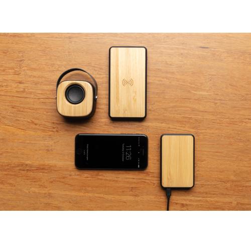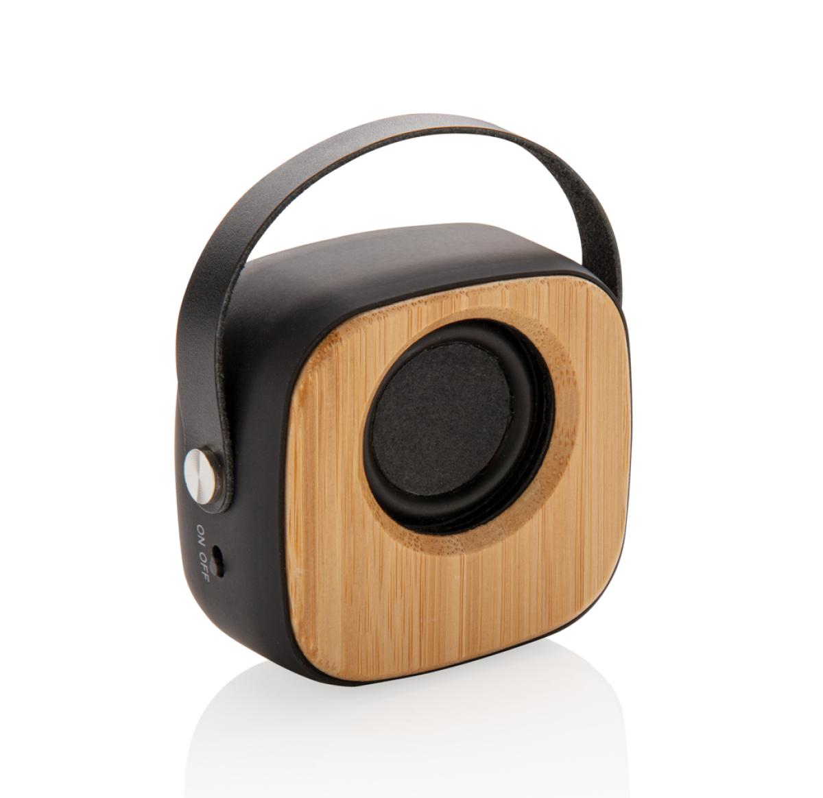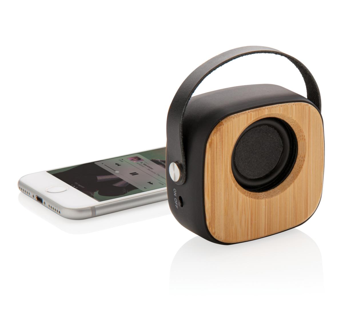 Natural bamboo 3W speaker with built-in 500 mAh lithium battery. With playing time up to 4 hours on one single charge and operating distance of 10m using BT5.0. Made from natural bamboo, ABS with soft touch finish and PU strap.