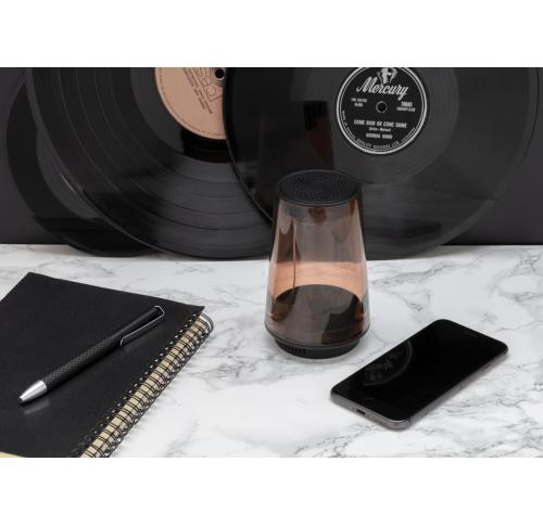 Powerful wireless 5W speaker with transparent fashionable design. The 1200 mAh battery allows for a playing time up to 5 hours on one single charge and connection distance up to 10 metres with BT 5.0. Includes micro cable to charge the speaker. Including