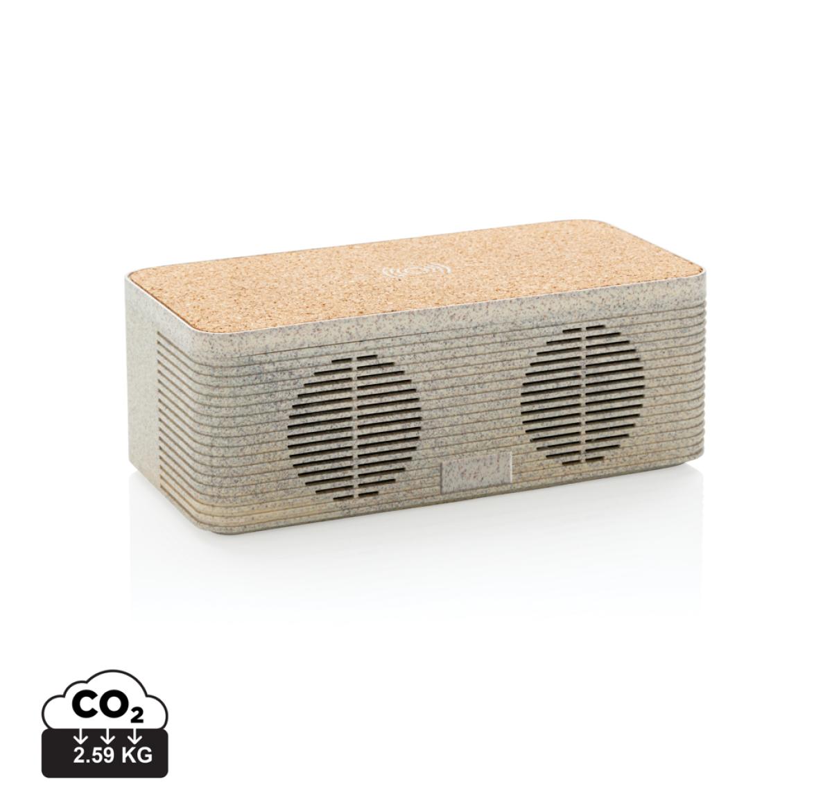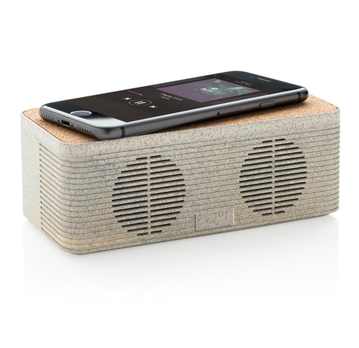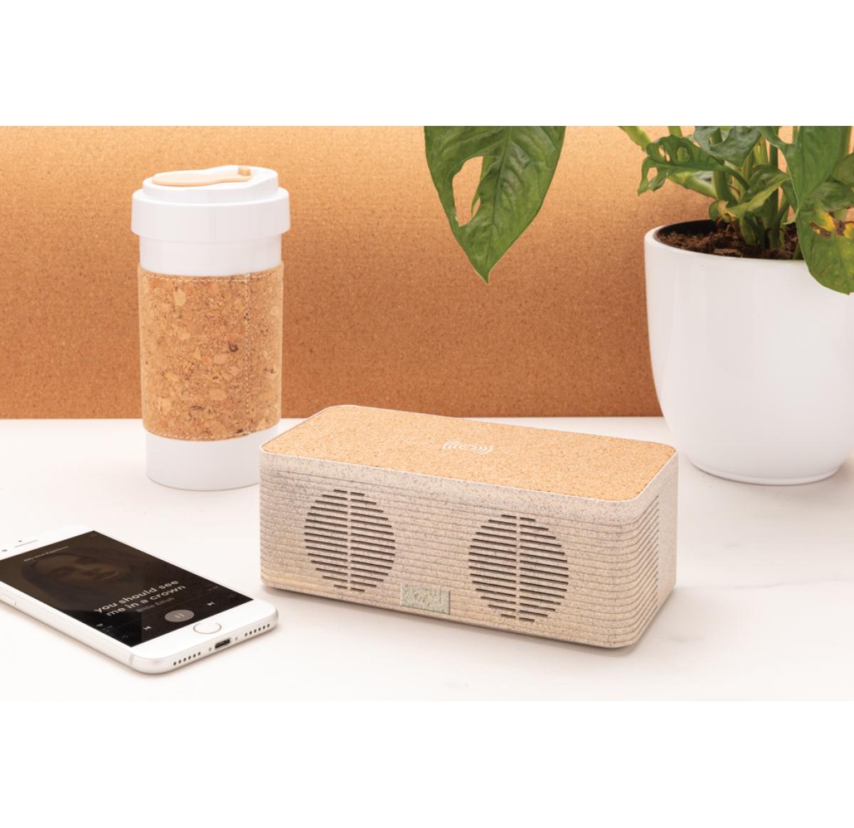 This sleek looking wheat straw (35% wheat fiber mixed with ABS) and cork wireless charging speaker enables you to combine listening to your favorite tunes while charging your phone wirelessly. Simply connect the included 150 cm Type C cable to your charge
