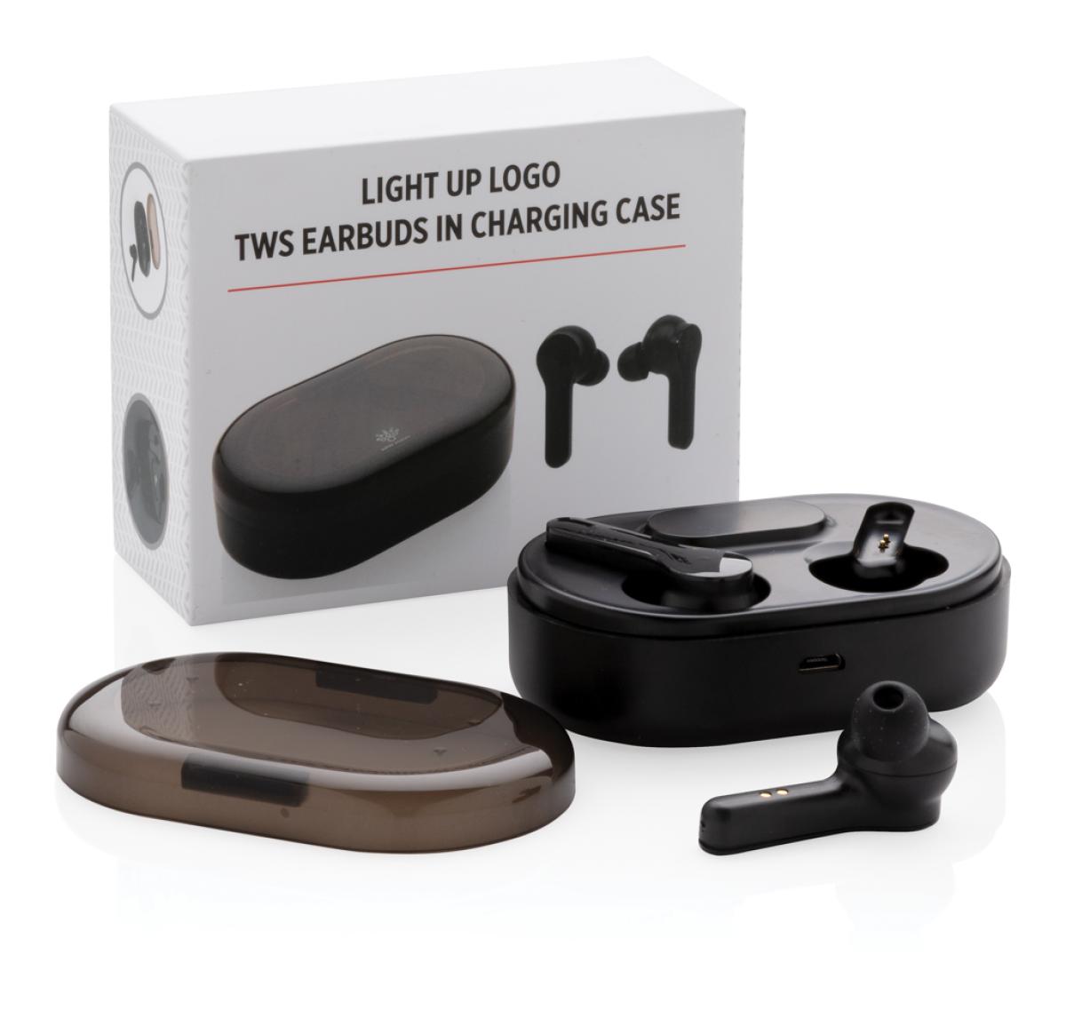 Customised Light Up Logo TWS Earbuds In Charging Case