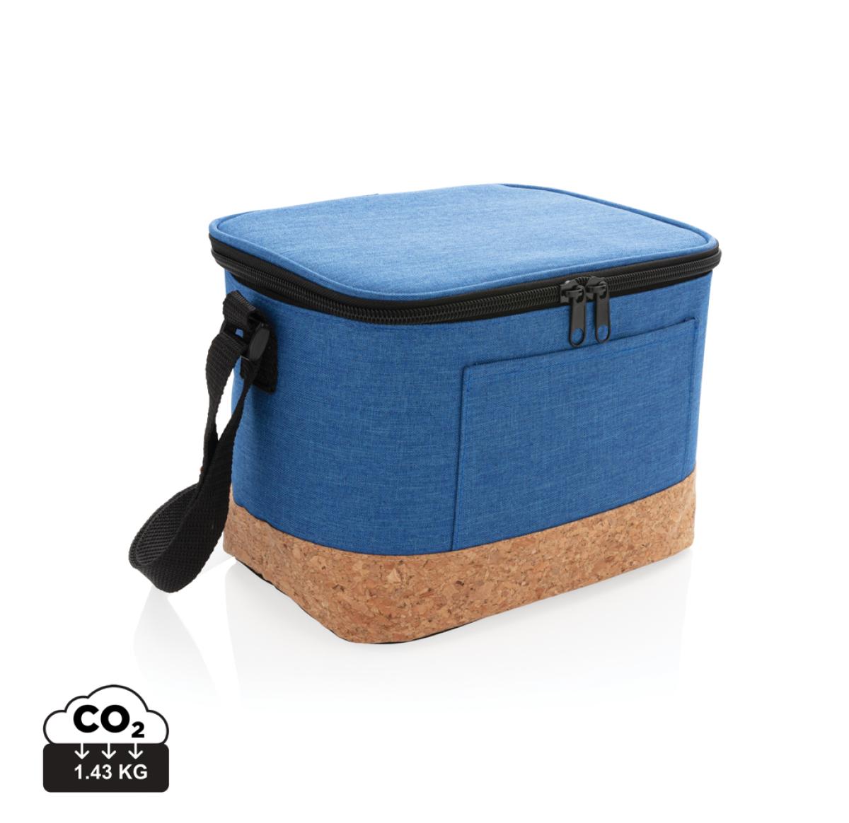 Printed Two Tone Cooler Bag With Cork Detail Blue