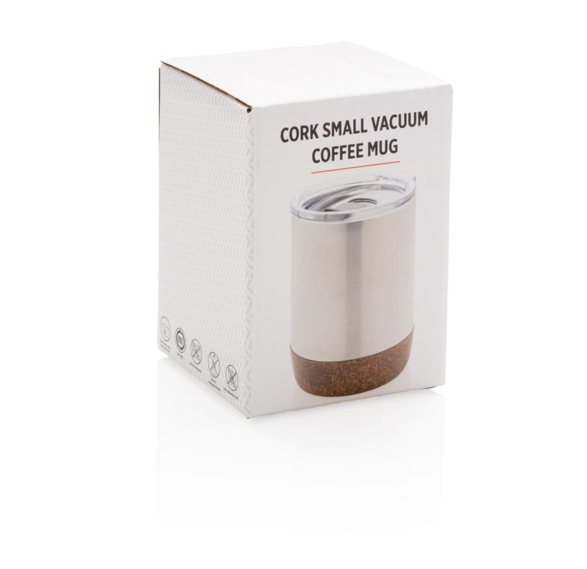 Vacuum insulated cork coffee mug with unique cork detail. 304 SS inside and 201SS outside. Keeps your drinks hot for up to 5h and cold up to 15h. Fits most coffee machines. Content: 180ml.