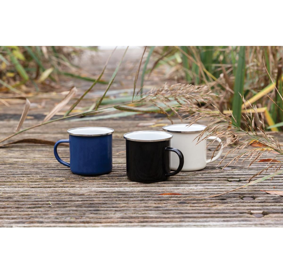 This lightweight enamel mug is perfect for camping, picnics and everyday use. Single-wall construction. This hand made item may have small imperfections but this only adds to its character. Handwash only. Content: 350 ml.