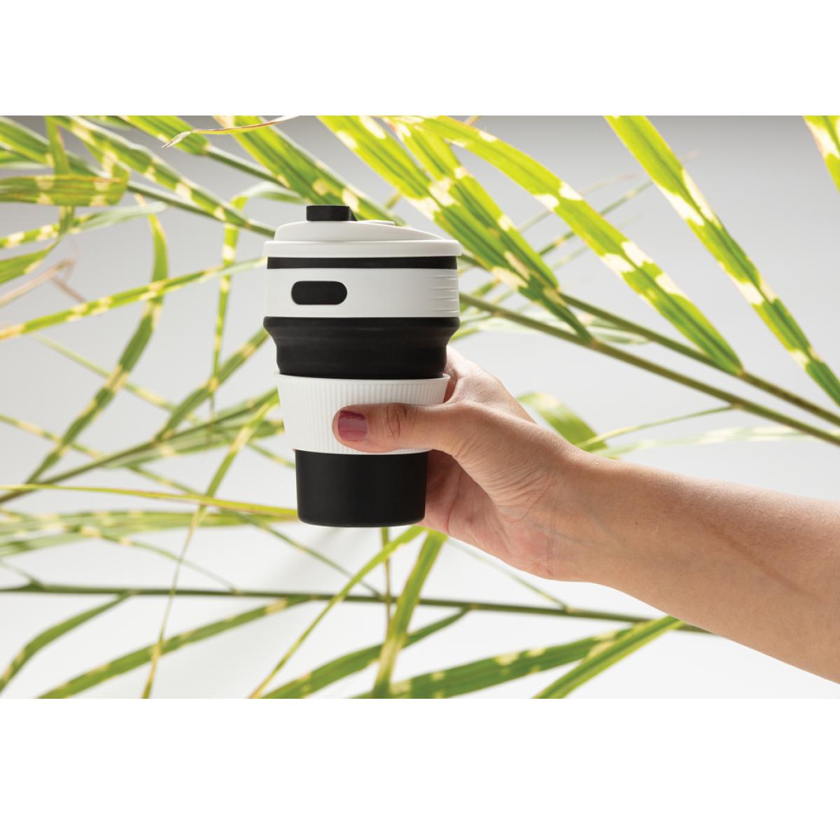 Printed Foldable Silicone Cup Black Dishwsher Safe