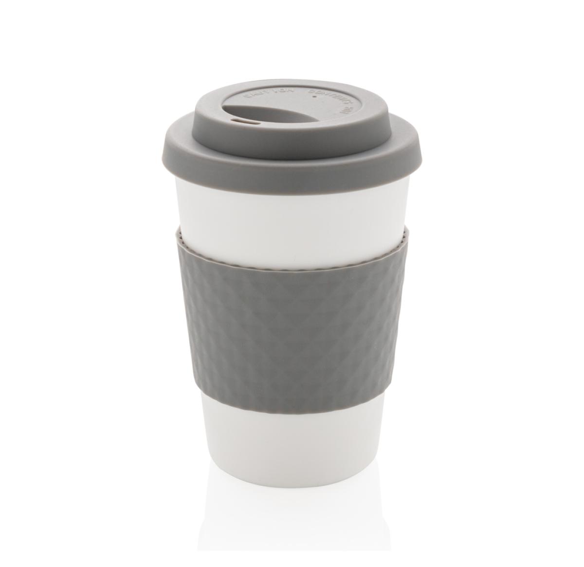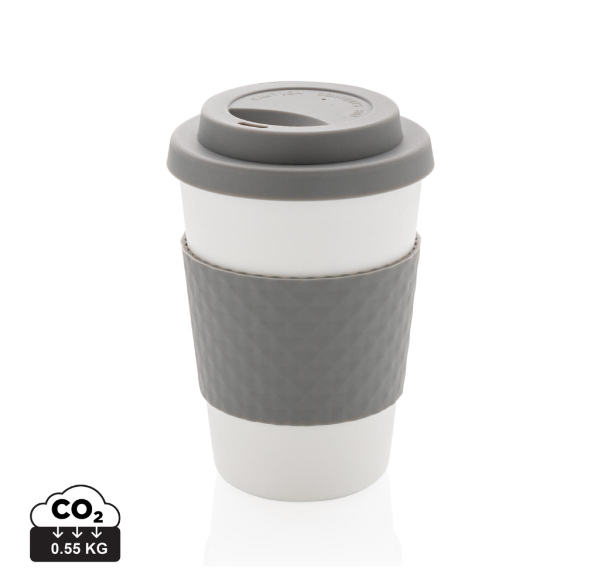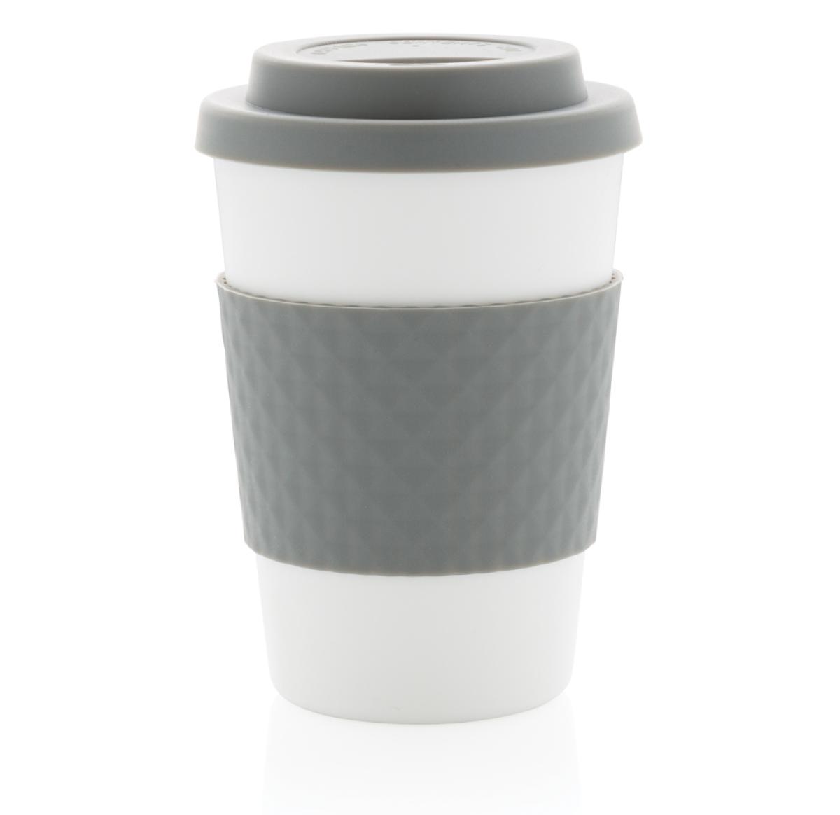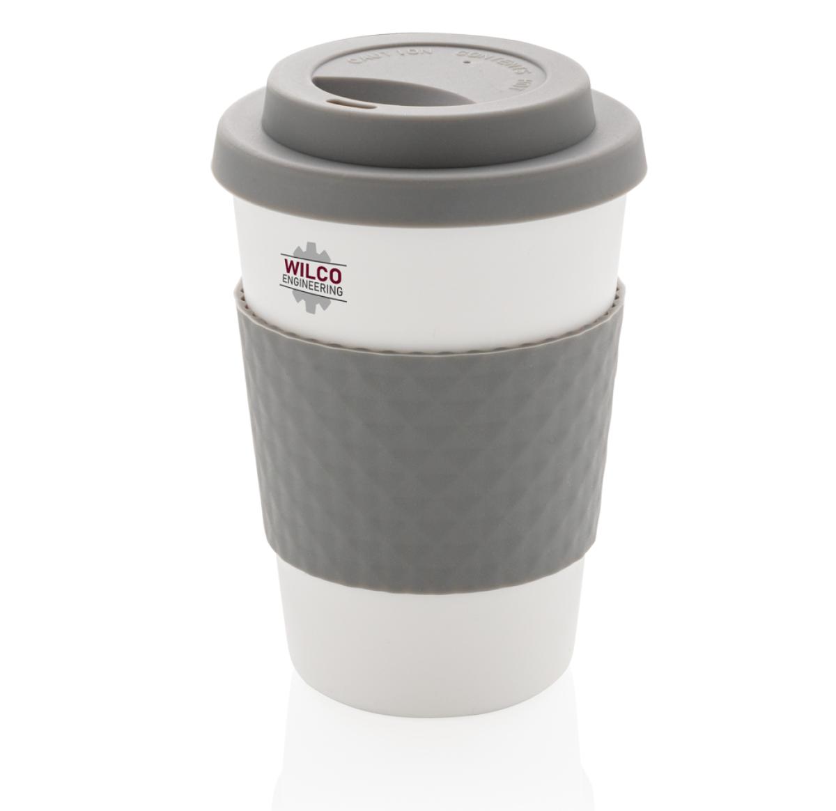 Reusable Coffee Cups 270ml Grey Trim Printed Logo
