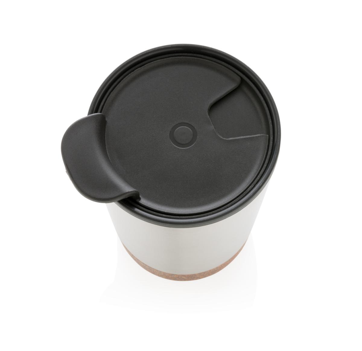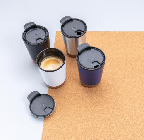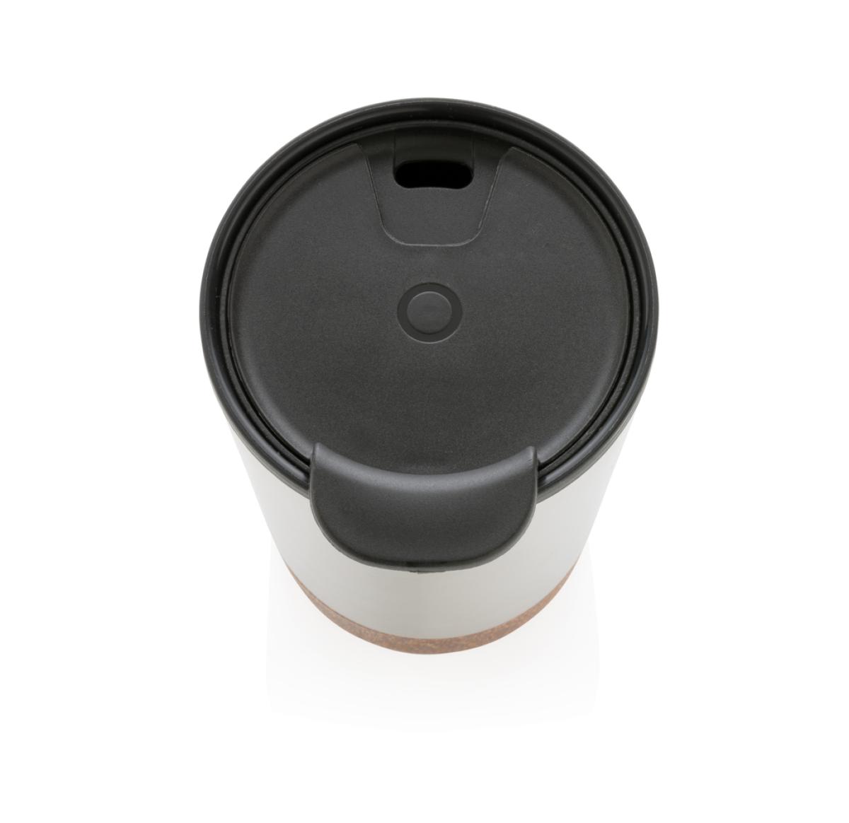Double wall coffee cup with plastic inside and unique cork detail. Keeps your drinks hot for up to 3h and cold up to 6h. Content: 300ml.