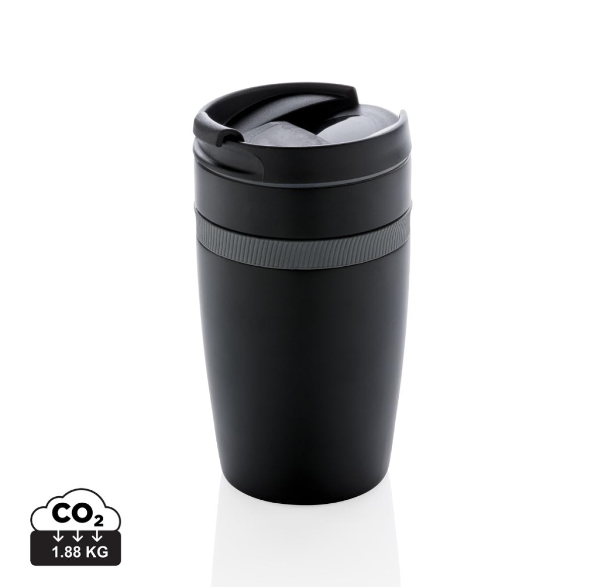 Just the right size, a perfect fit for most coffee machines. This vacuum insulated double wall stainless steel design tumbler with silicone band detail. Keeps your drinks hot for up to 5h and cold for up to 15h. Content: 280ml. Registered design®