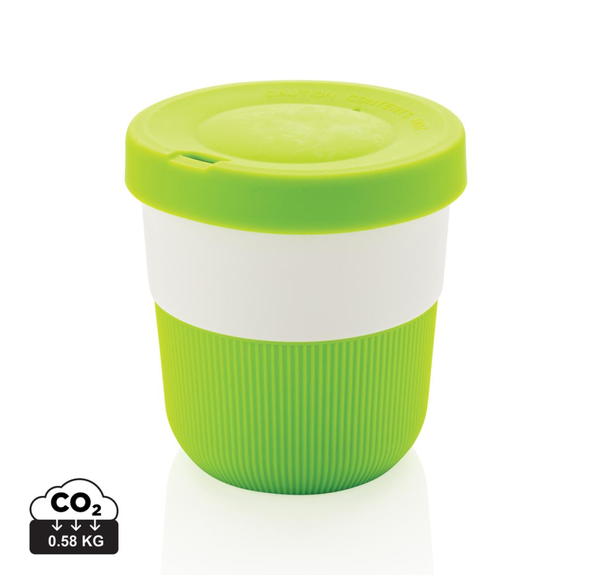 A sustainable alternative to traditional cups! Bringing style and practicality to your morning commute, this PLA coffee cup is ideal for transporting your favourite hot beverage. Manufactured from plant material (PLA), so not only stylish but also kind fo