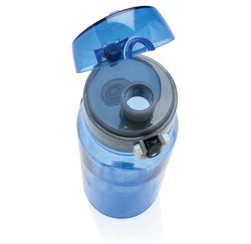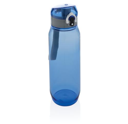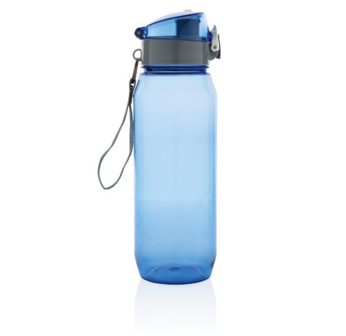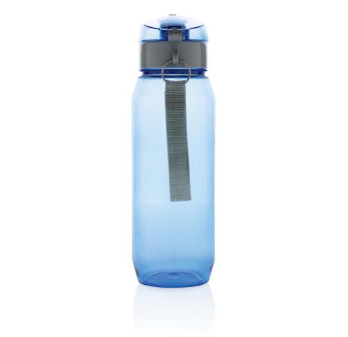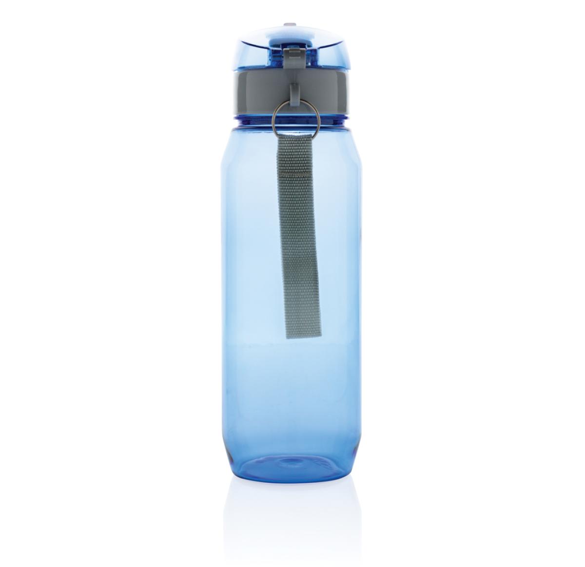 Leak proof tritan bottle with lockable cap and single hand 'press open' function. Including carrying strap. Odourless and 100% BPA-free. Content: 800ml.