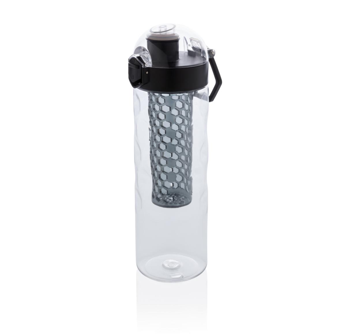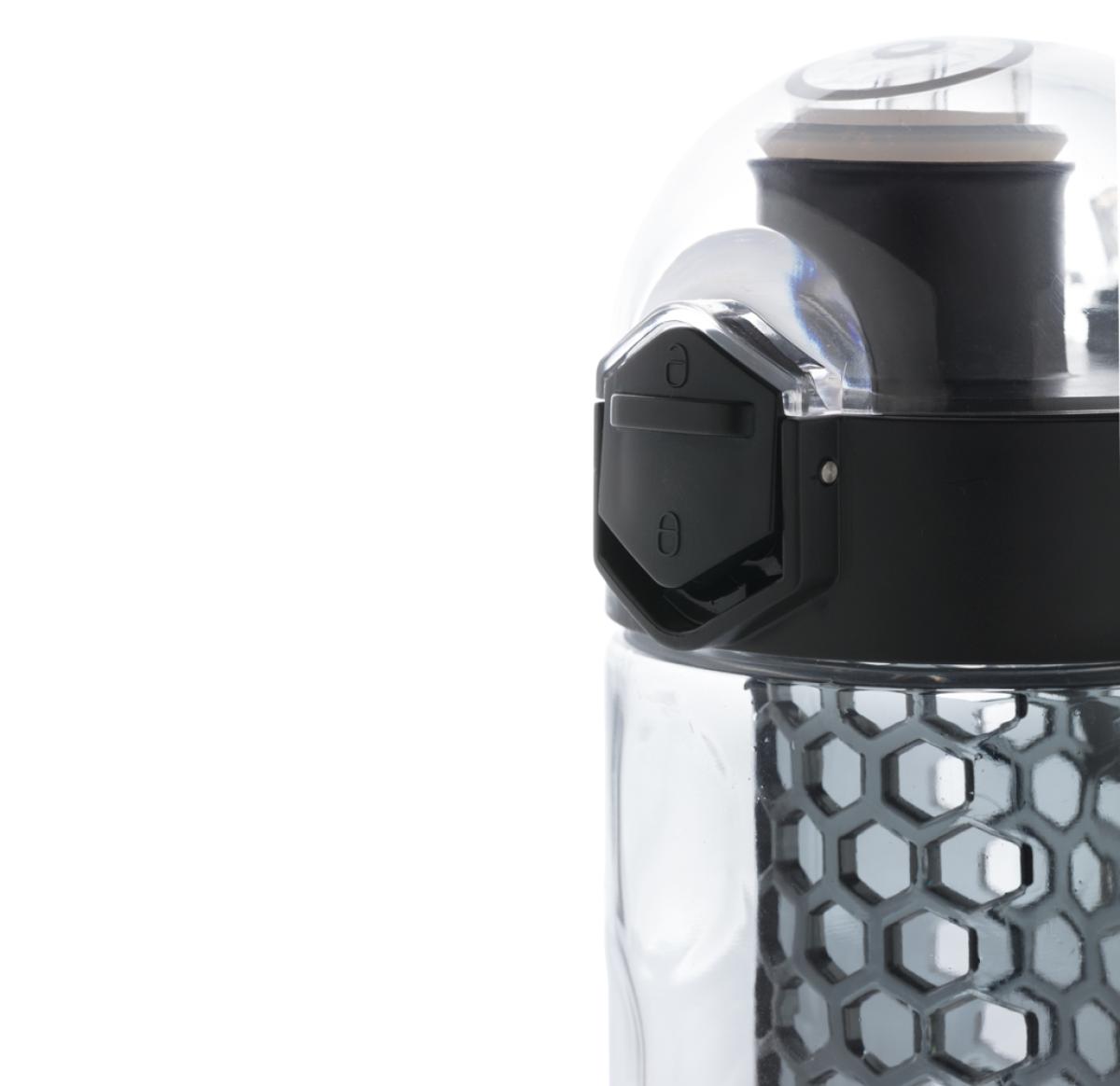Add some healthy fruit flavours to your water. This design bottle with honeycomb details offers convenient single-handed drinking. Push the button and the lid flips open. There’s a special locking mechanism to keep users from accidentally pressing the but