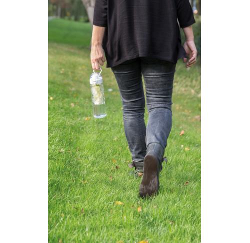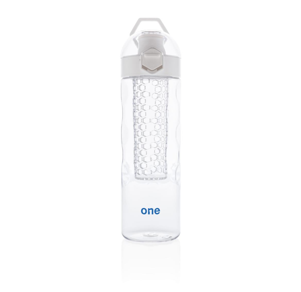 Add some healthy fruit flavours to your water. This design bottle with honeycomb details offers convenient single-handed drinking. Push the button and the lid flips open. There’s a special locking mechanism to keep users from accidentally pressing the but