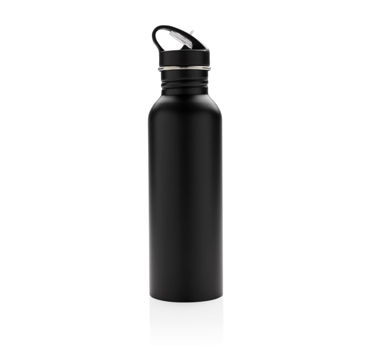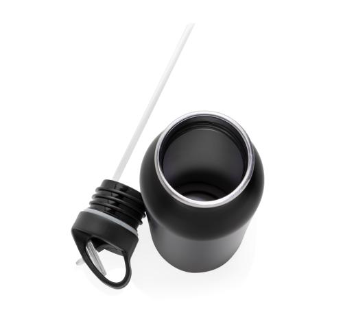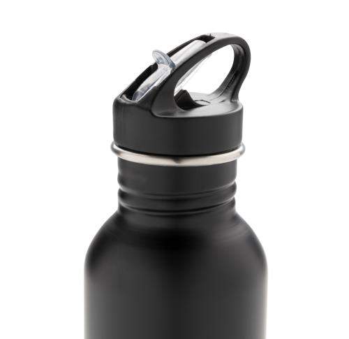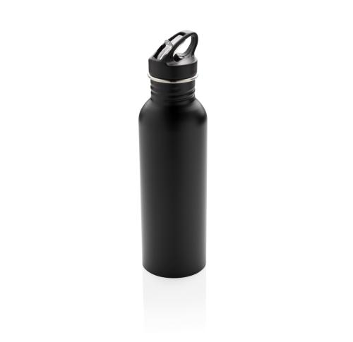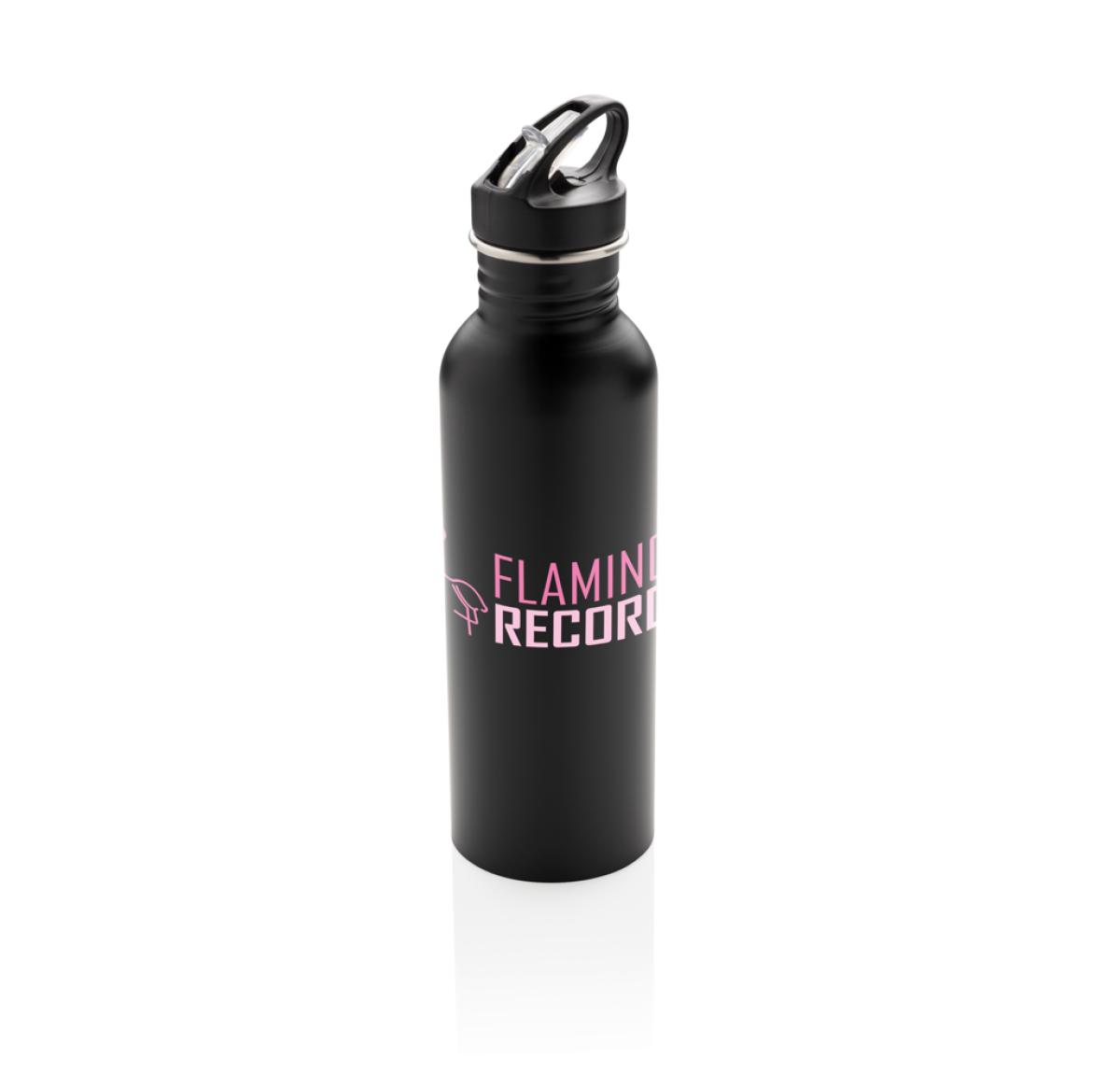 Branded Deluxe Stainless Steel Metal Activity Sports Bottle - Black Flip Lid