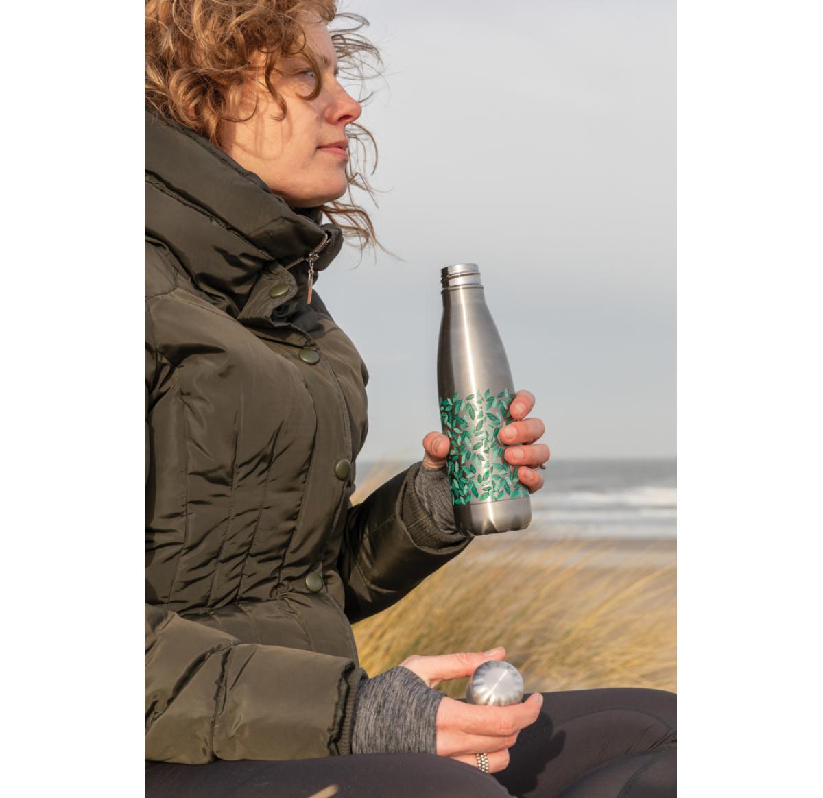 Elevate your daily water intake with this vacuum insulated stainless steel bottle. The bottle keeps chilled beverages cold for up to 15 hours and hot drinks warm for up to 5 hours. With a base that fits in most cup holders, this sleek looking water bottle